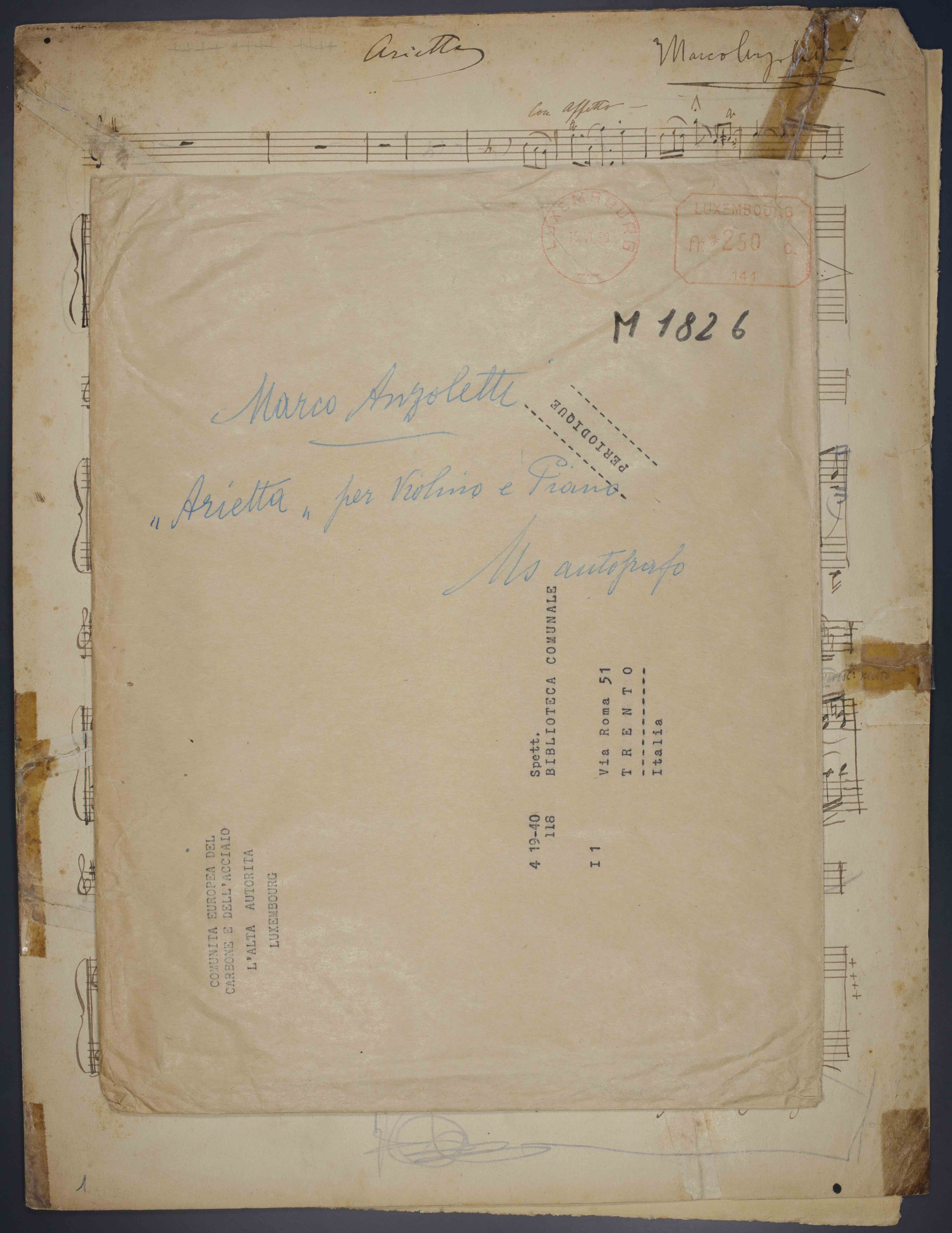 1 partitura ([3] c.) , 34 cm. Ricevuto in deposito dalla Società Filarmonica di Trento nel 1941. Manoscritto autografo
