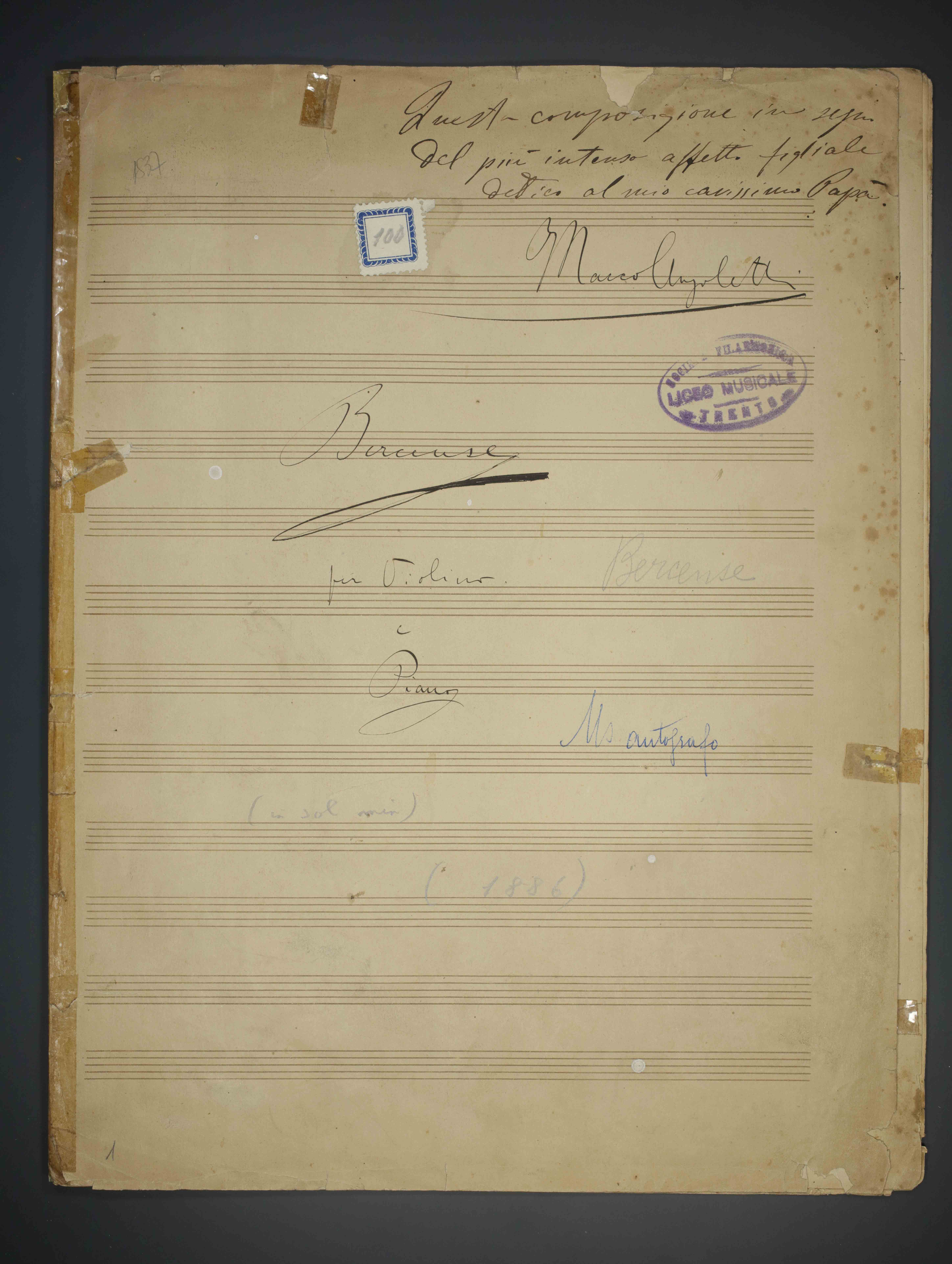 1 partitura ([6] c.) , 34 cm. Ricevuto in deposito dalla Società Filarmonica di Trento nel 1941. Manoscritto autografo. Dedica al padre Luigi Anzoletti. Antica segnatura di collocazione a c. 1r: 100. Timbro del Liceo musicale - Società Filarmonica Trento a c. 1r