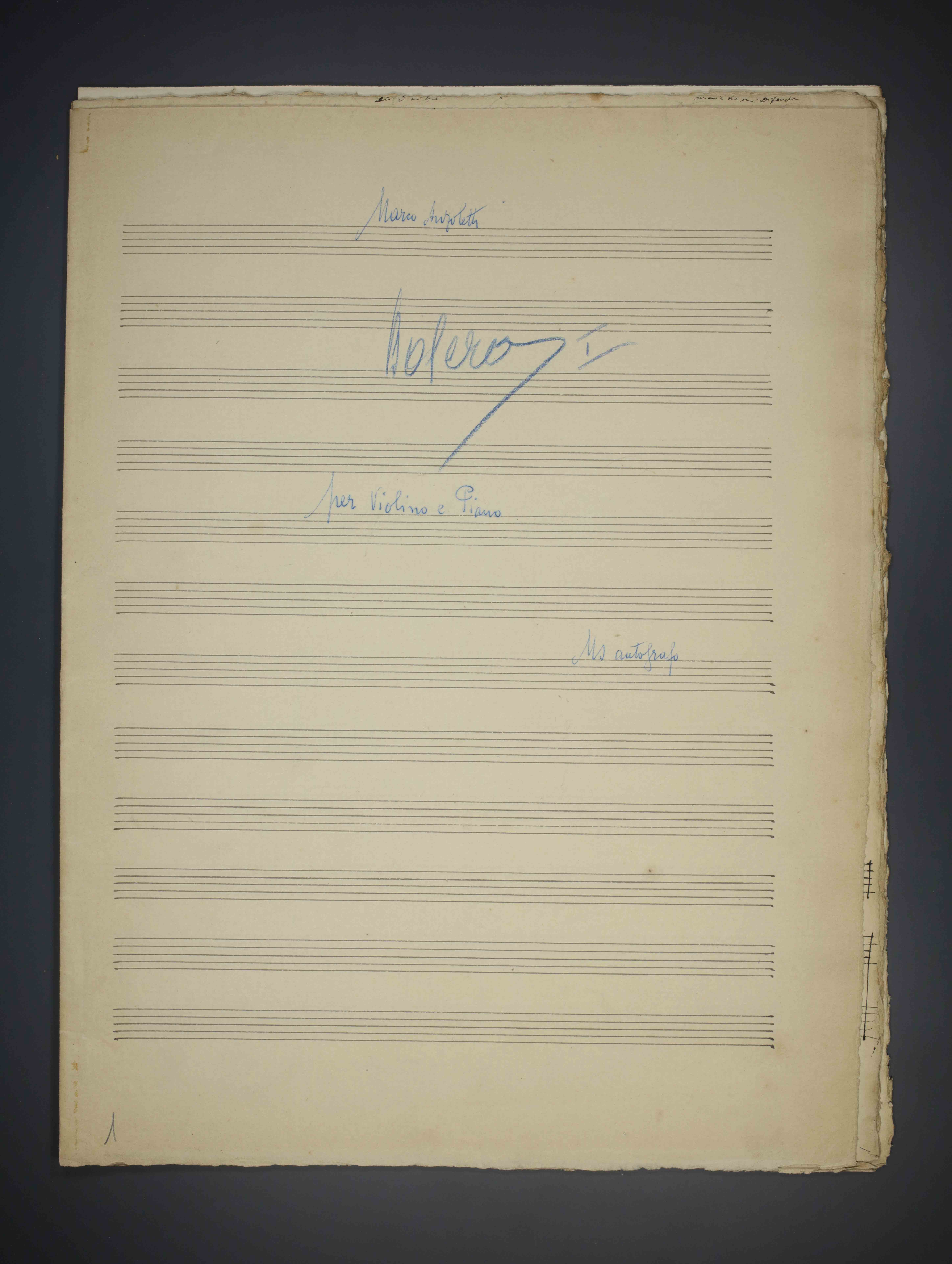 1 partitura ([12] c.) , 34 cm. Ricevuto in deposito dalla Società Filarmonica di Trento nel 1941. Manoscritto autografo