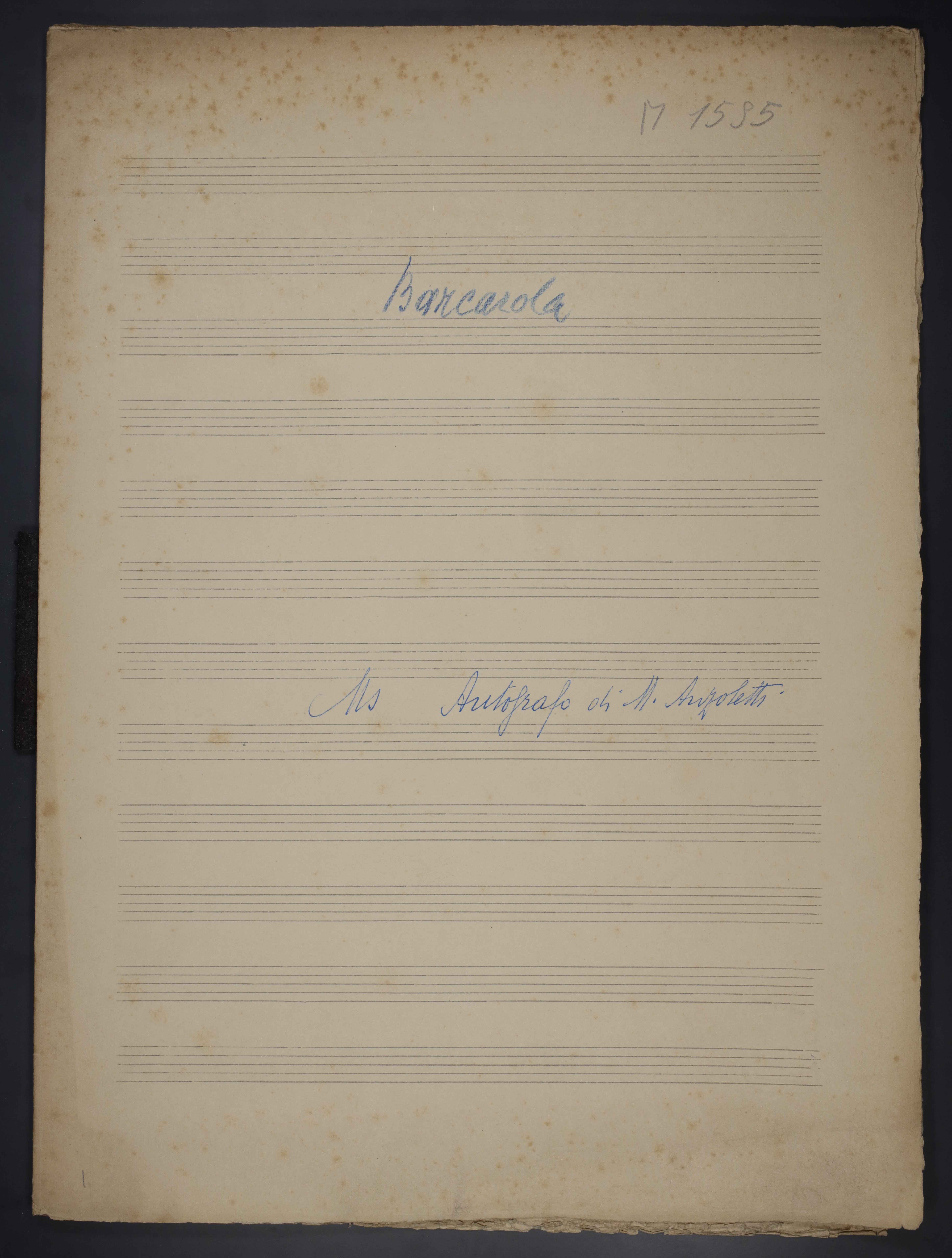 [1], 9, [1] p. , 33 cm. Ricevuto in deposito dalla Società Filarmonica di Trento nel 1941. Manoscritto autografo.