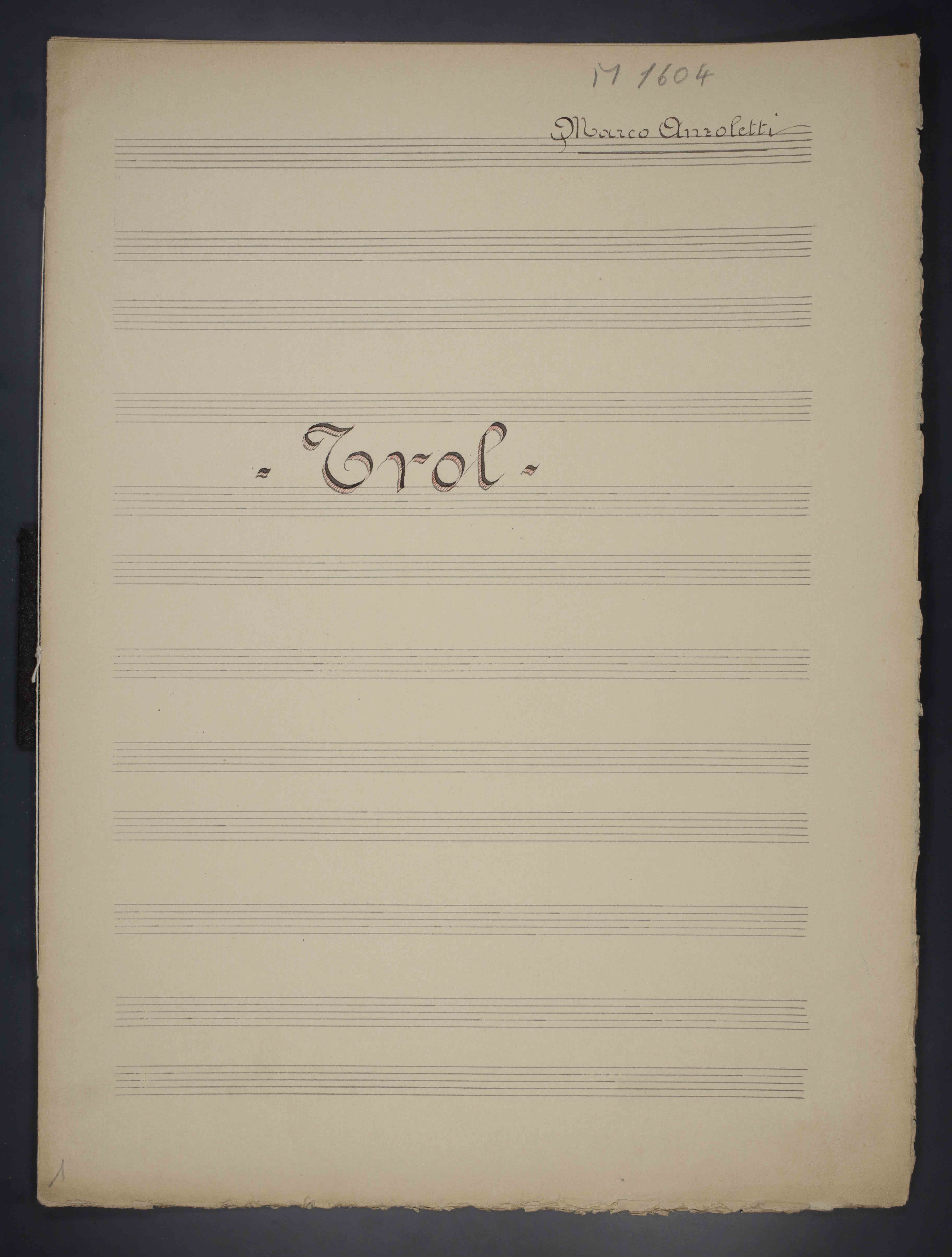 [5] c. , 33 cm. Ricevuto in deposito dalla Società Filarmonica di Trento nel 1941. Manoscritto autografo. Testo di Arrigo Boito.