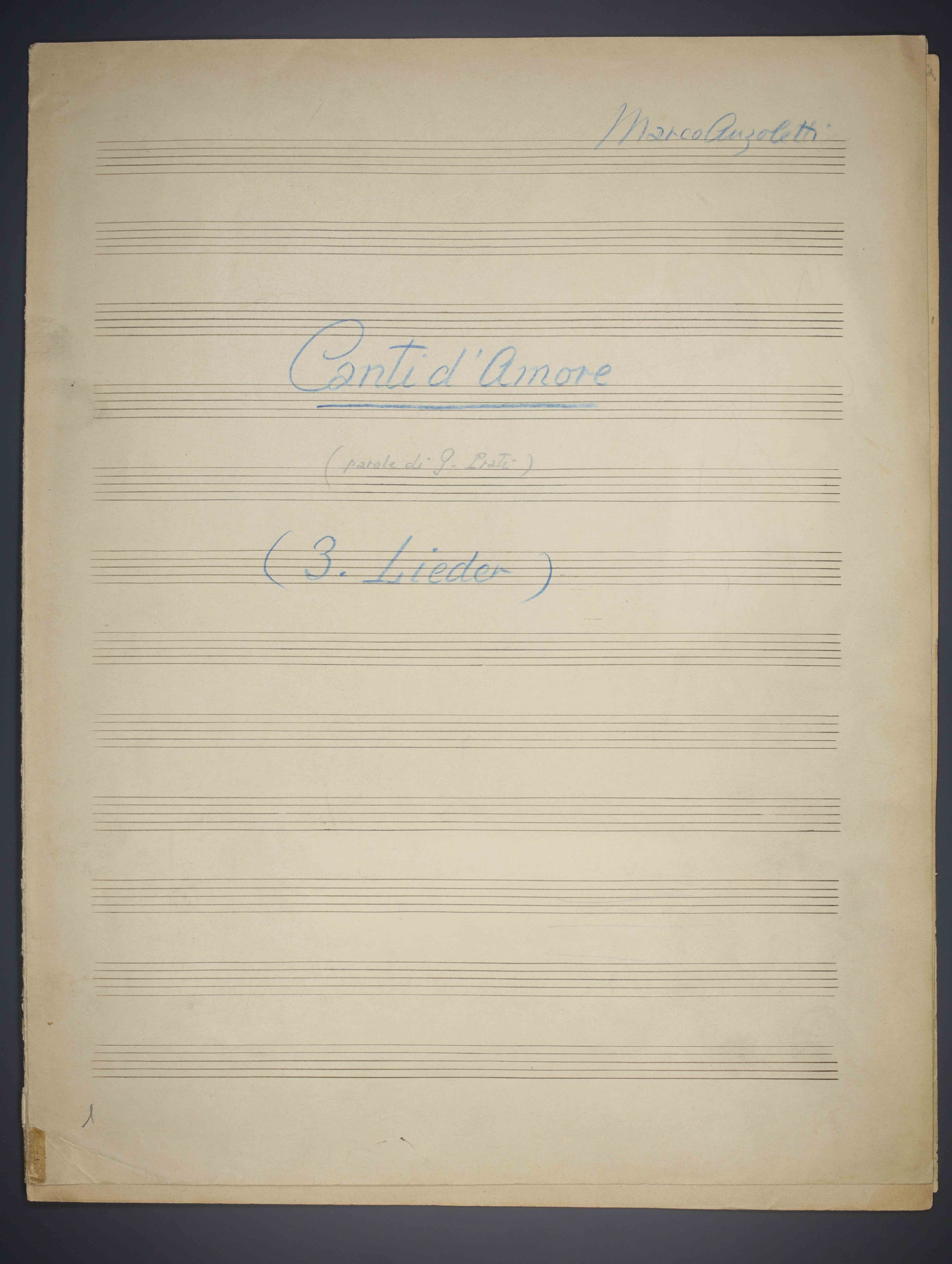 [5] c. , 33 cm. Ricevuto in deposito dalla Società Filarmonica di Trento nel 1941. Manoscritto autografo. Testo di Giovanni Prati. Contiene le canzoni La rosa e gli amanti , Sogno dell'alba , Tutto ritorna.