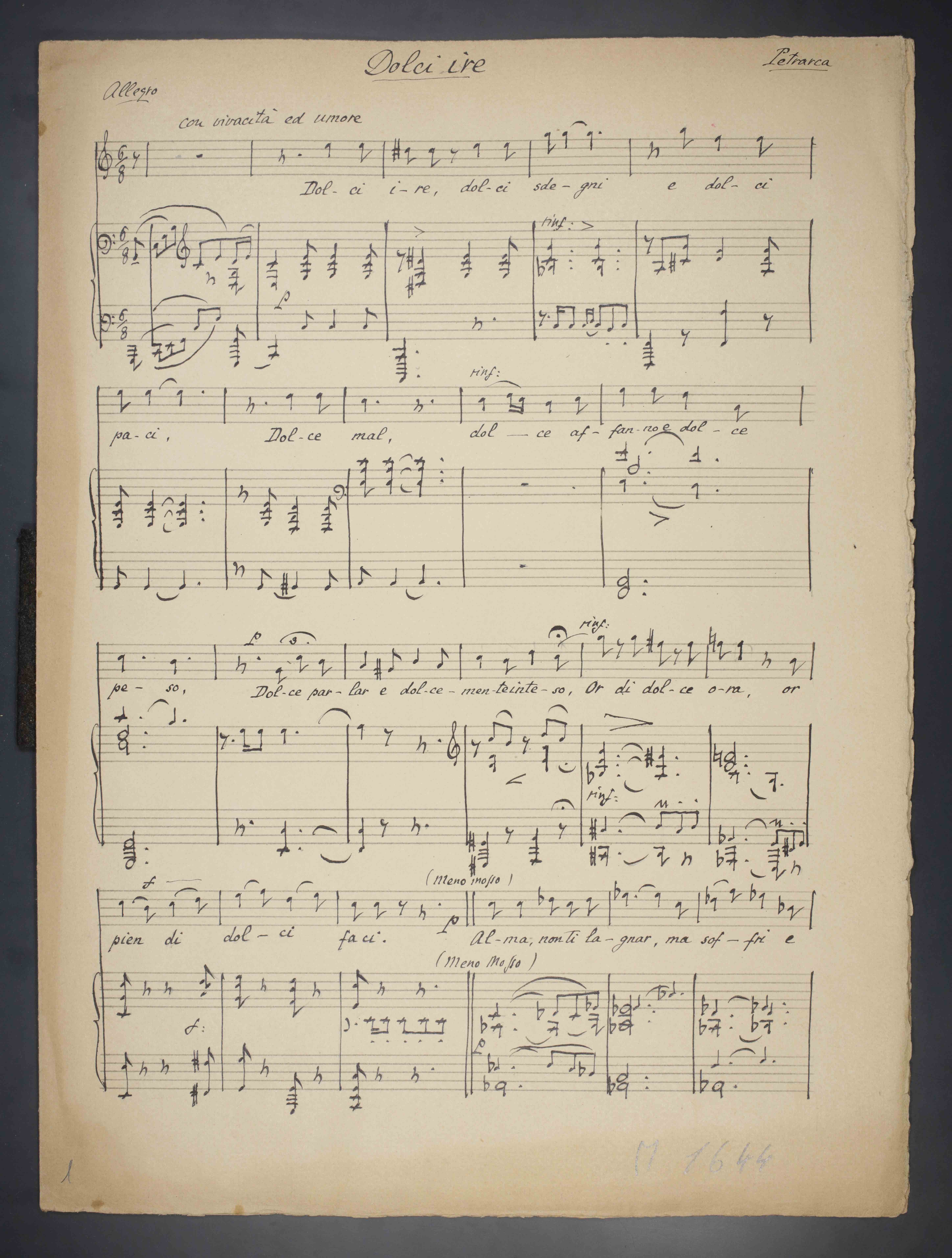 [2] c. , 33 cm. Ricevuto in deposito dalla Società Filarmonica di Trento nel 1941. Manoscritto autografo. Testo di Francesco Petrarca