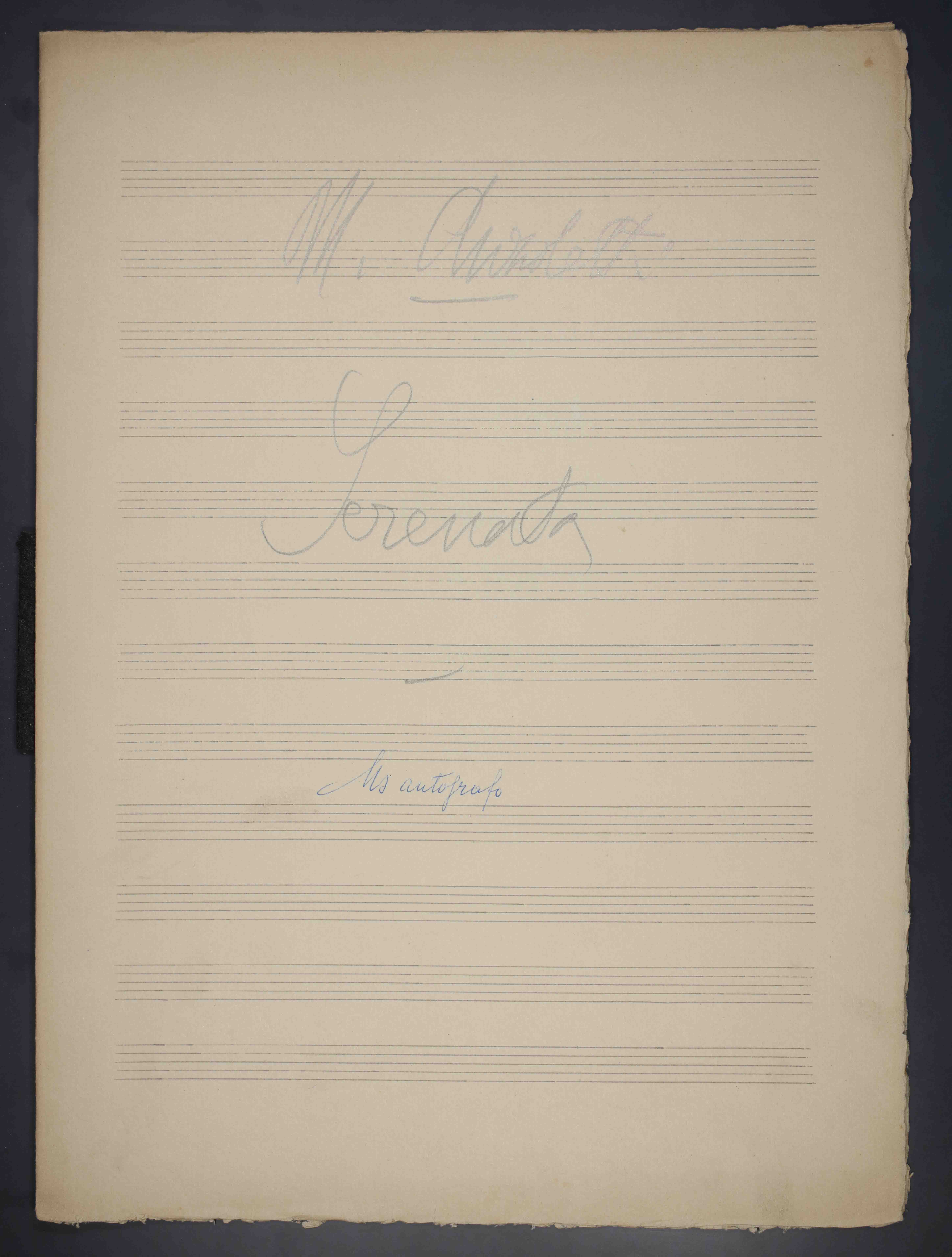 [2], 5, [1] p., 33 cm. Ricevuto in deposito dalla Società Filarmonica di Trento nel 1941. Manoscritto autografo. Testo di Giosuè Carducci