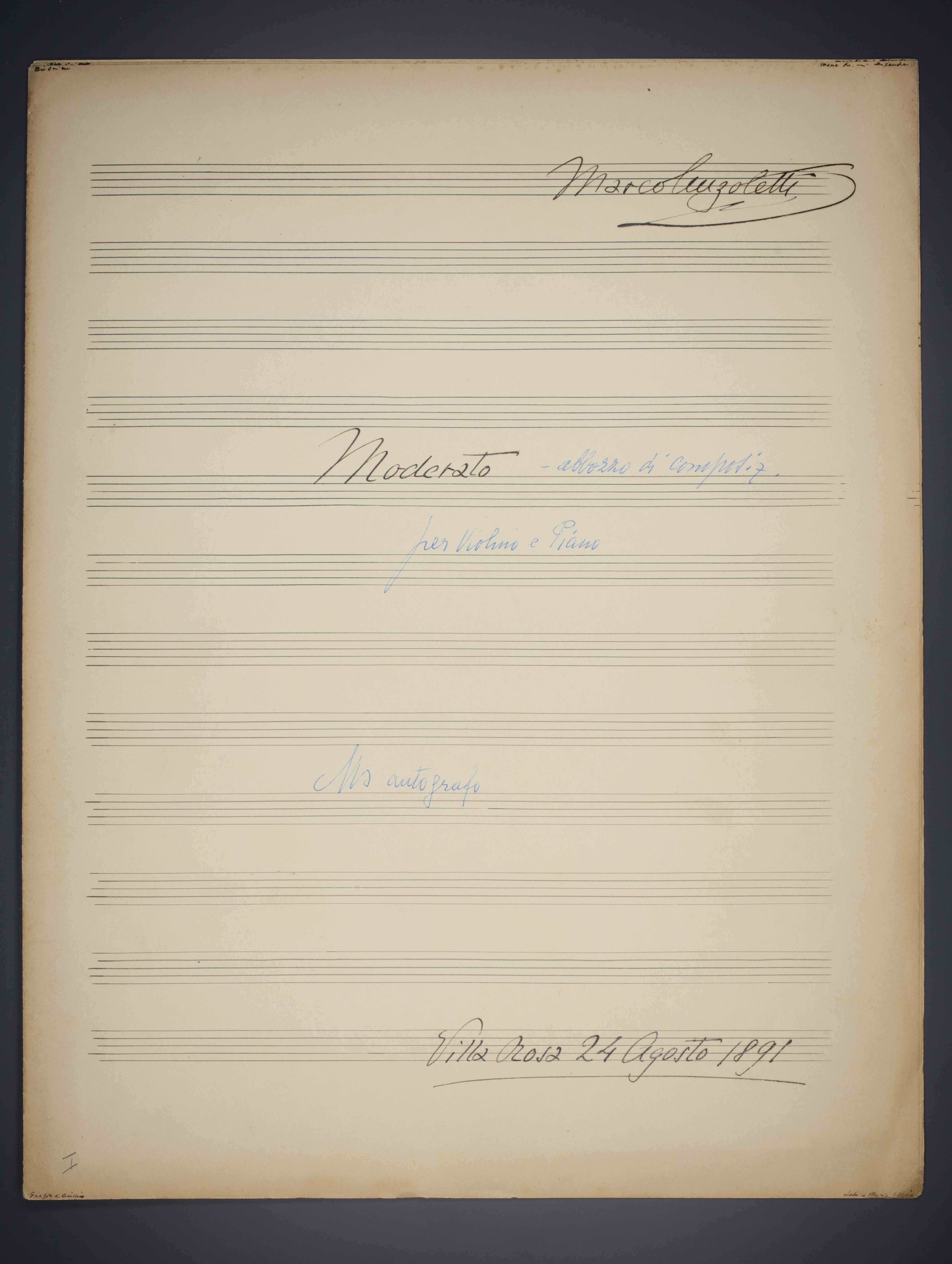 1 partitura ([5] c.) , 33 cm. Ricevuto in deposito dalla Società Filarmonica di Trento nel 1941. Manoscritto autografo.