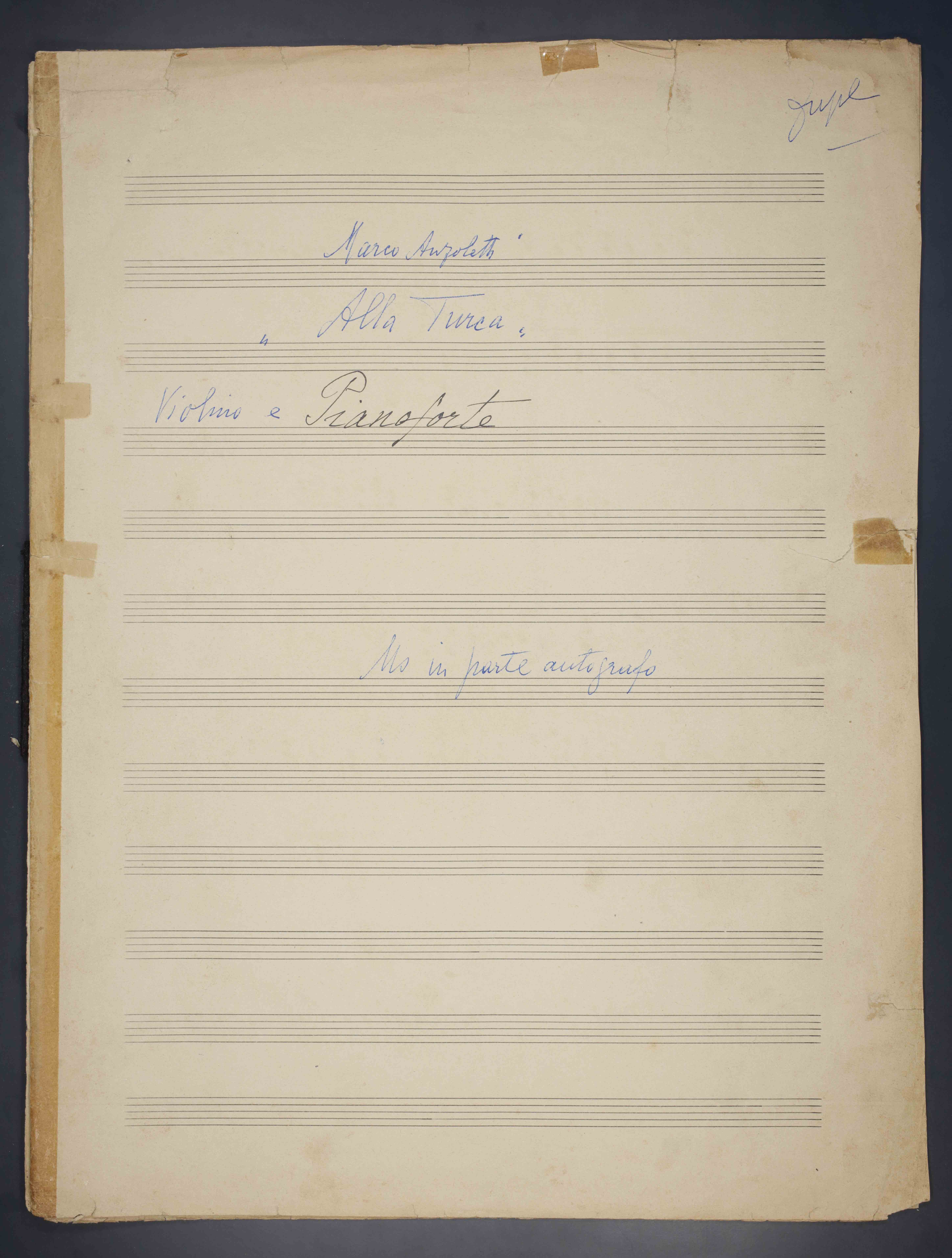 2 parti (3, [1], 7, [1] p.) , 33 cm. Ricevuto in deposito dalla Società Filarmonica di Trento nel 1941. Manoscritto autografo.