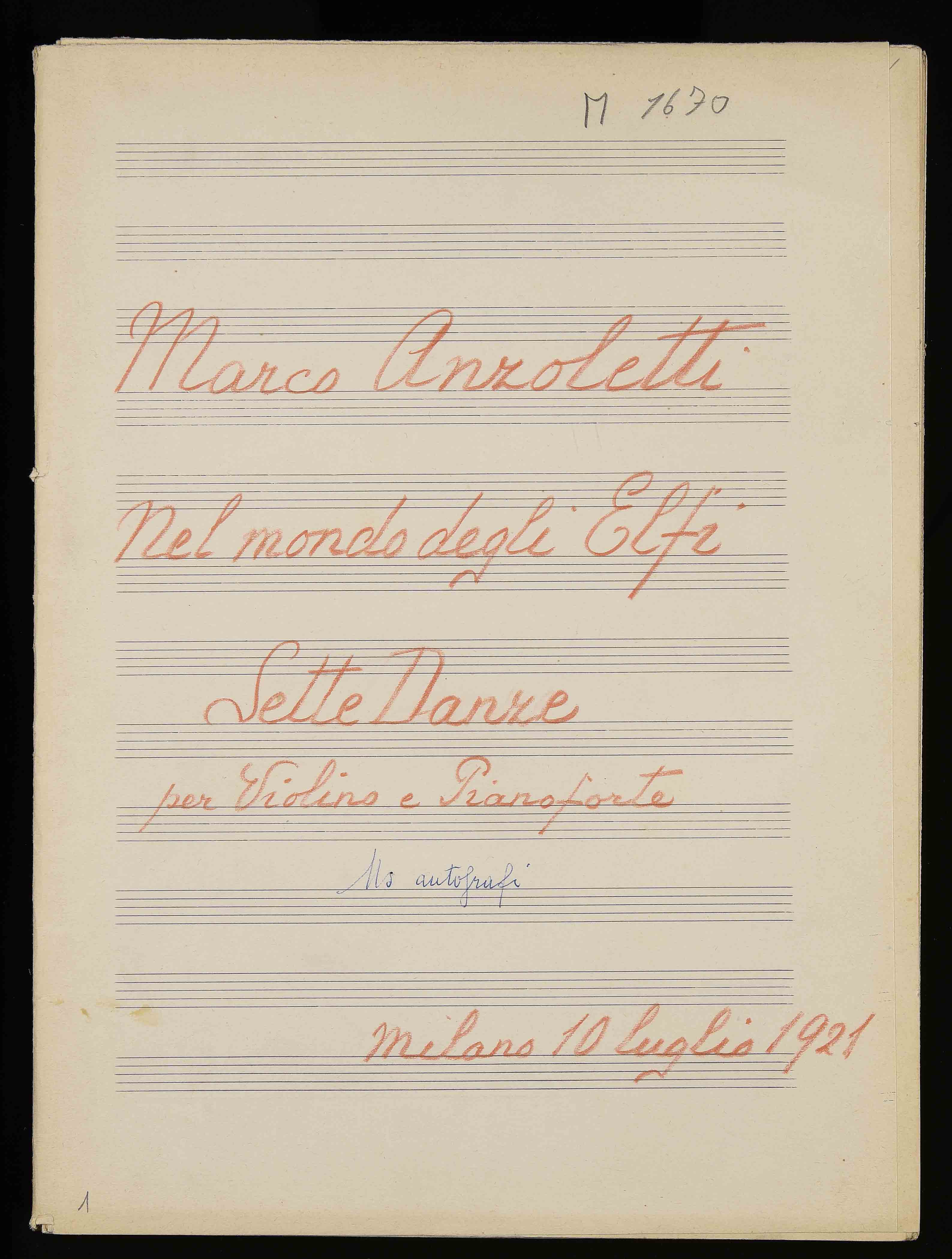 1 partitura ([36] c.) , 33 cm. Ricevuto in deposito dalla Società Filarmonica di Trento nel 1941. Manoscritto autografo. Contiene: Gli elfi delle valli , Gli elfi delle acque , Gli elfi dei campi , Gli elfi dei boschi , Gli elfi dei prati , Gli elfi delle caverne , Gli elfi dei monti