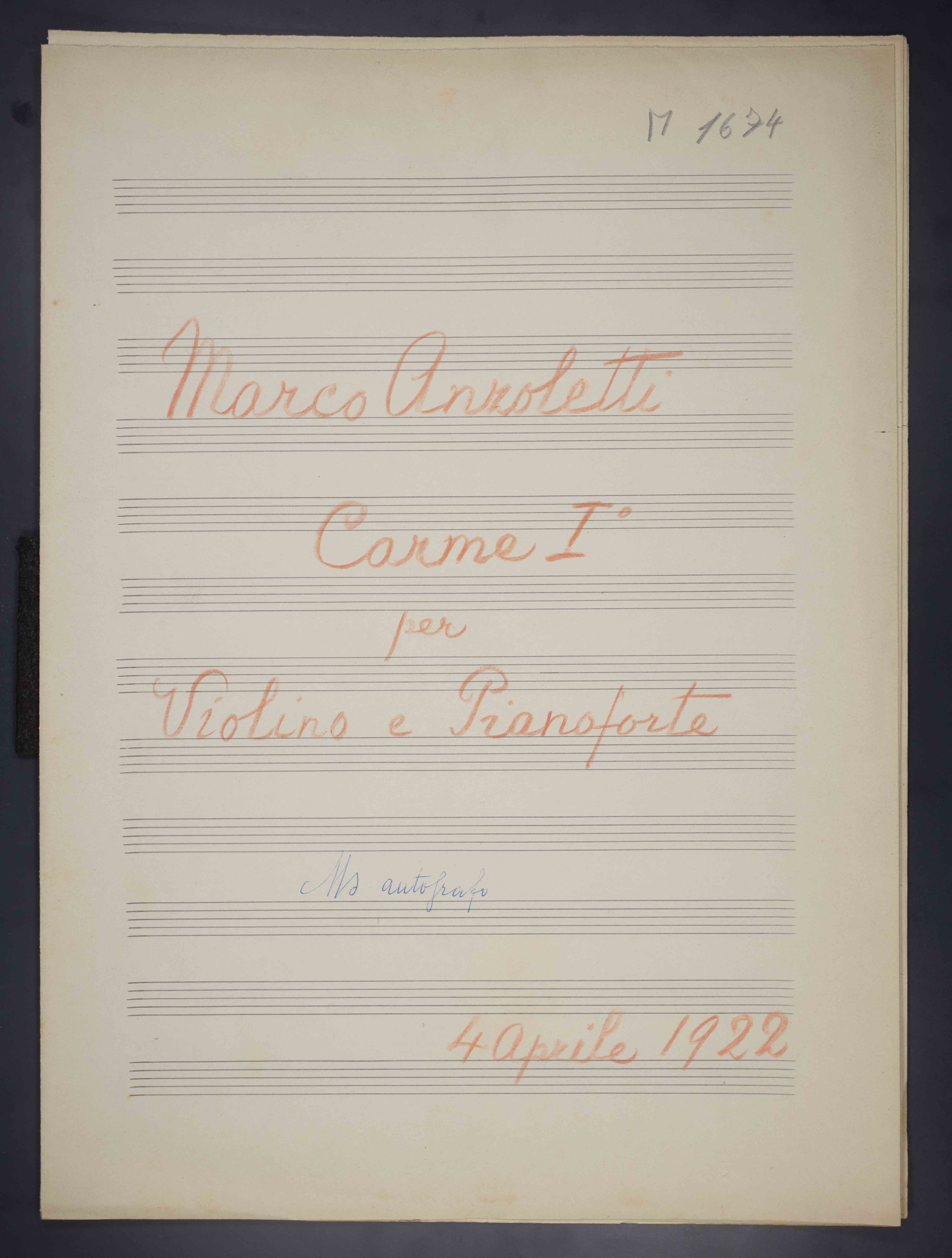 1 partitura ([2], 6, [2] p.) , 33 cm. Ricevuto in deposito dalla Società Filarmonica di Trento nel 1941. Manoscritto autografo.