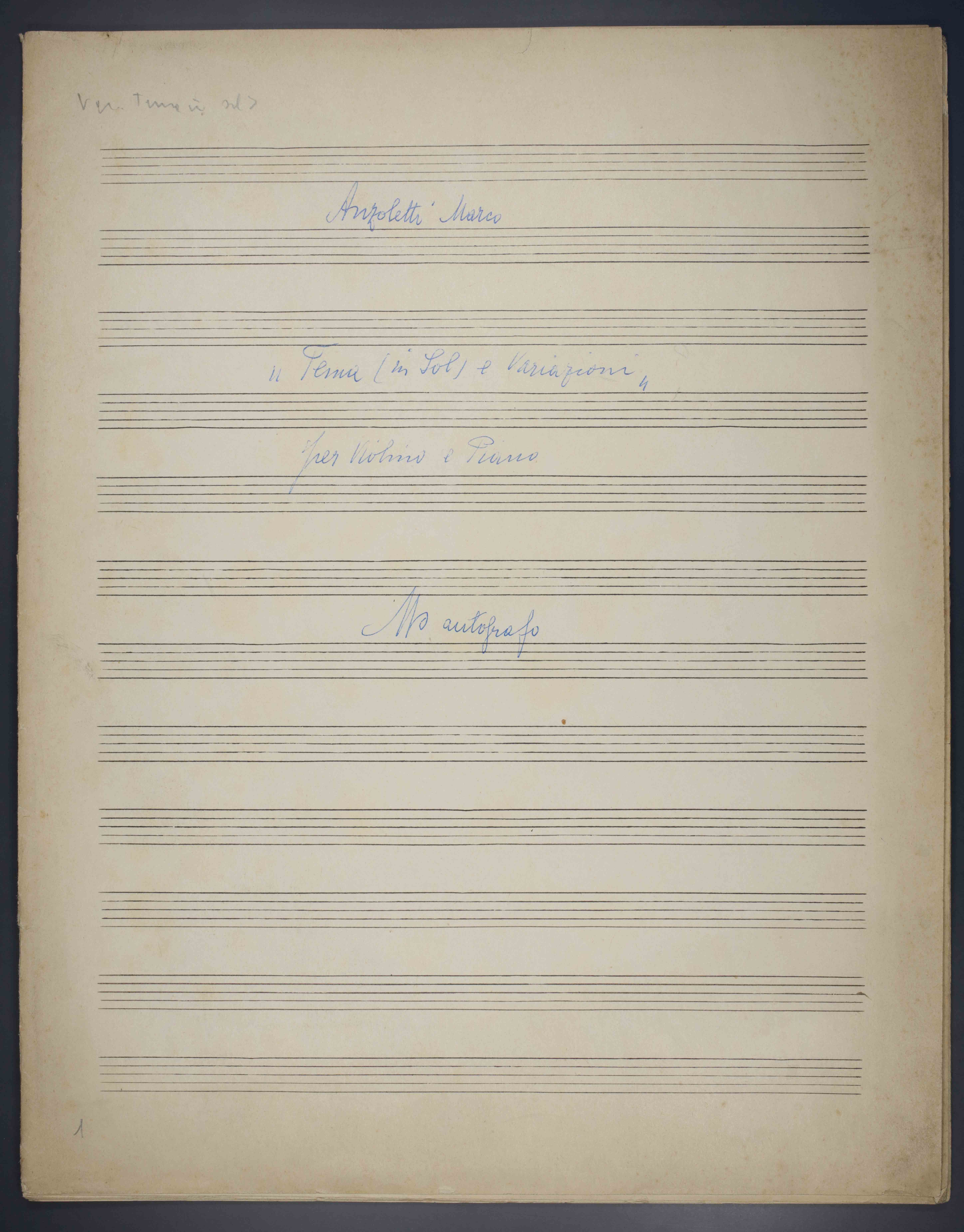 Tema (in Sol) e variazioni : per violino e piano