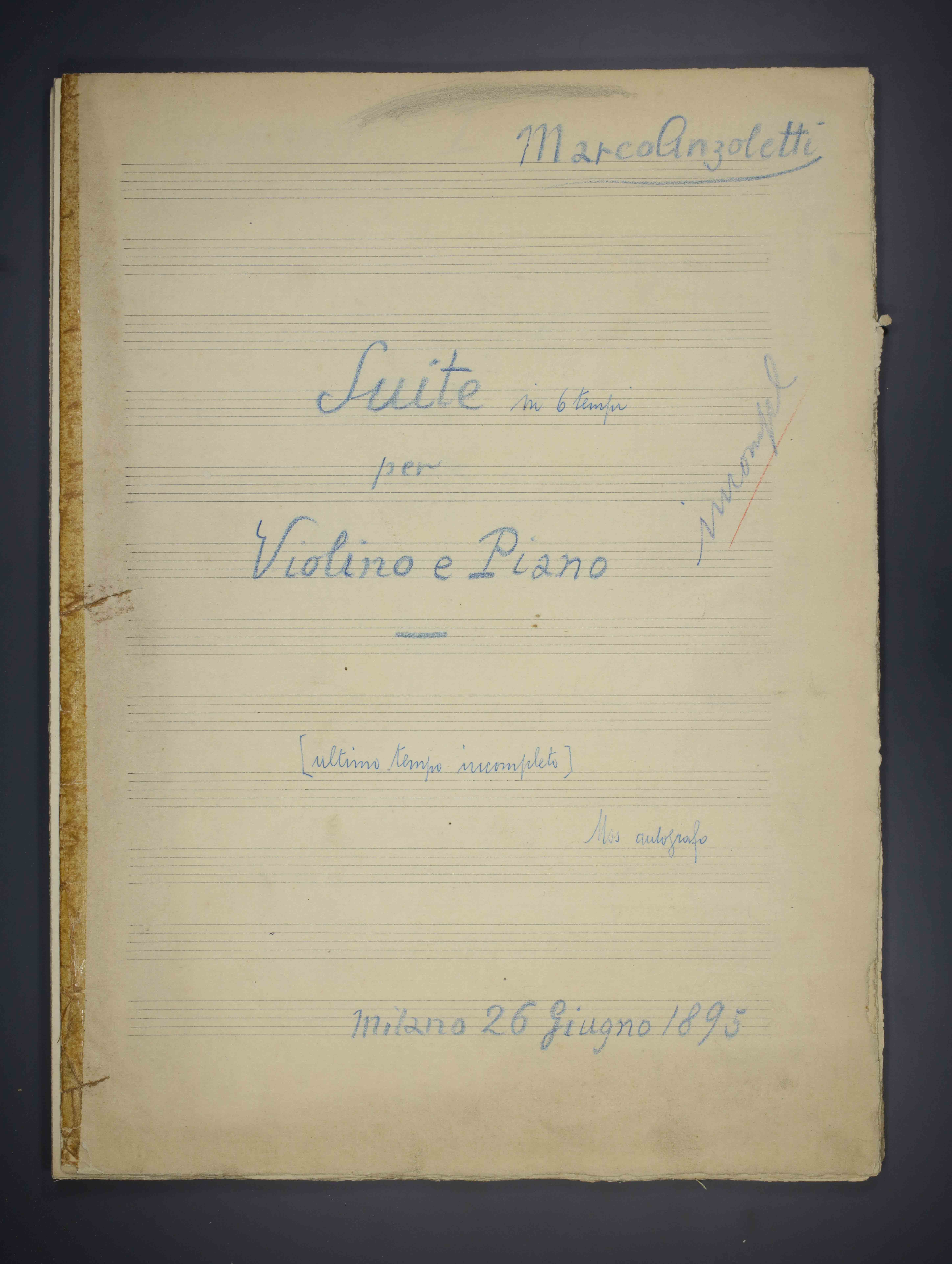 [2], 60 p. , 33 cm. Ricevuto in deposito dalla Società Filarmonica di Trento nel 1941. Manoscritto autografo.