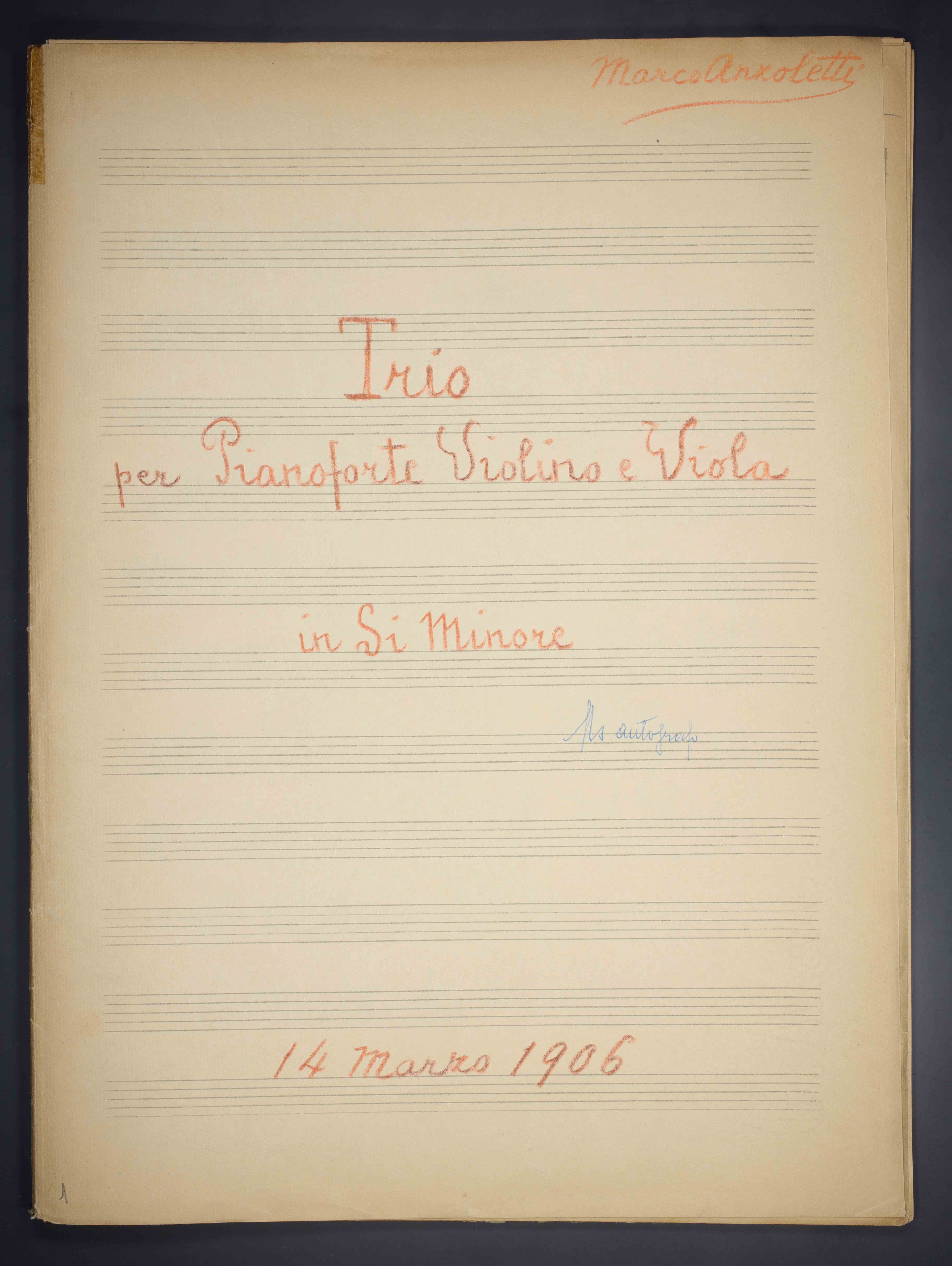 [28] c. , 33 cm. Ricevuto in deposito dalla Società Filarmonica di Trento nel 1941. Manoscritto autografo.