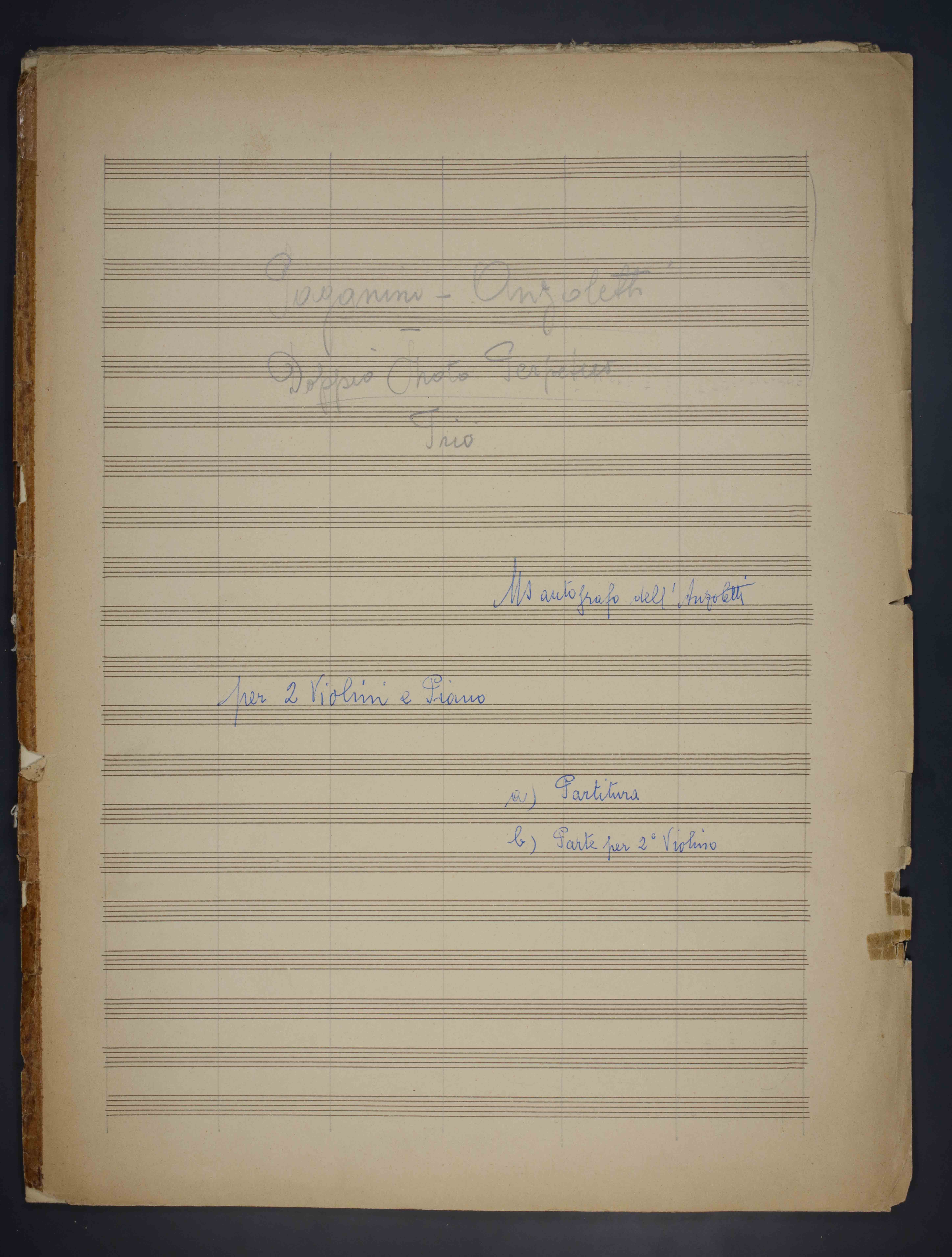 [2], 16, [2] p. , 34 cm + 1 parte (3 c.). Ricevuto in deposito dalla Società Filarmonica di Trento nel 1941. Manoscritto autografo.