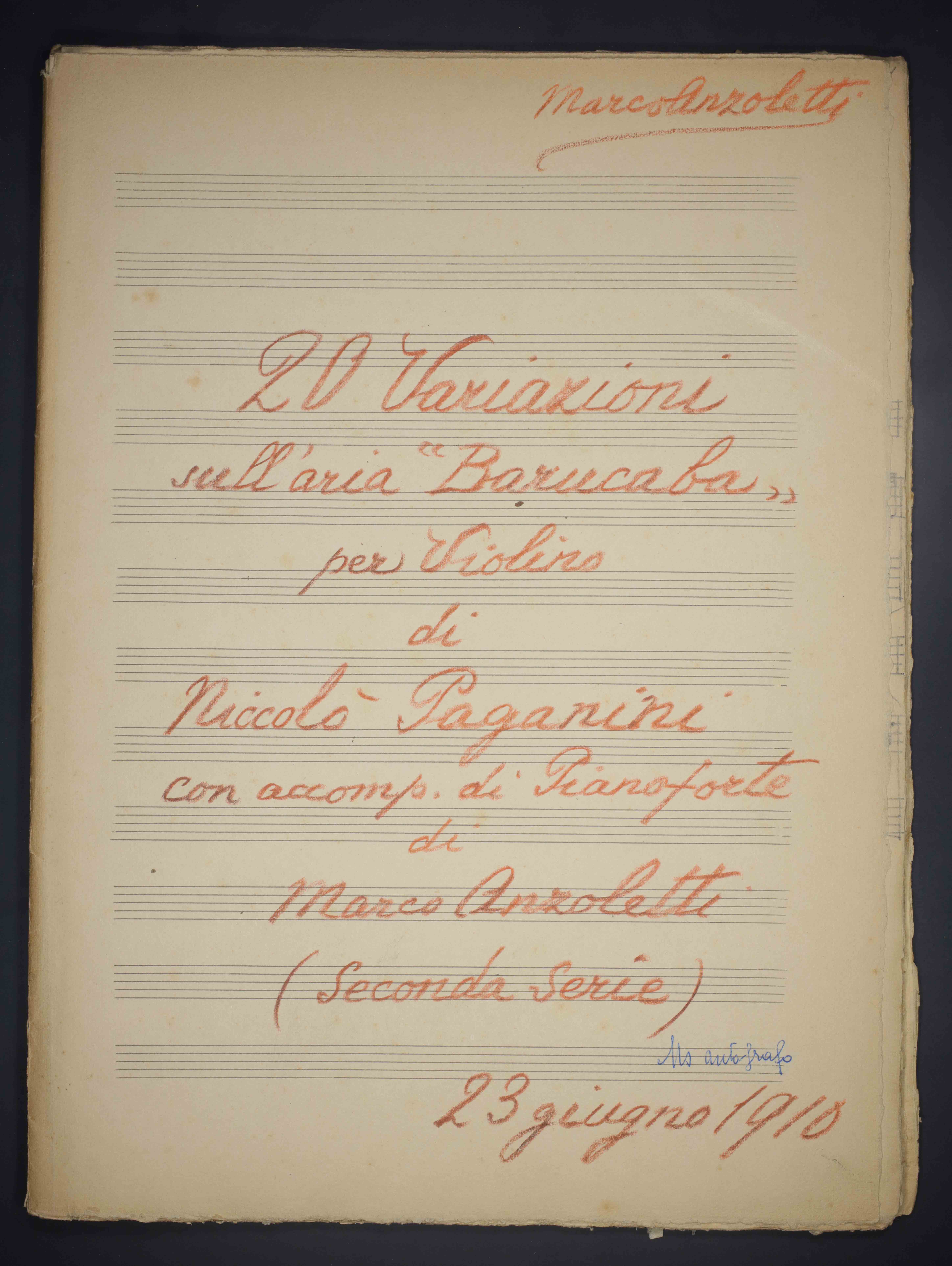| 20 Variazioni sull'aria "Barucaba" per violino ; con accompagnamento di pianoforte di Marco Anzoletti |