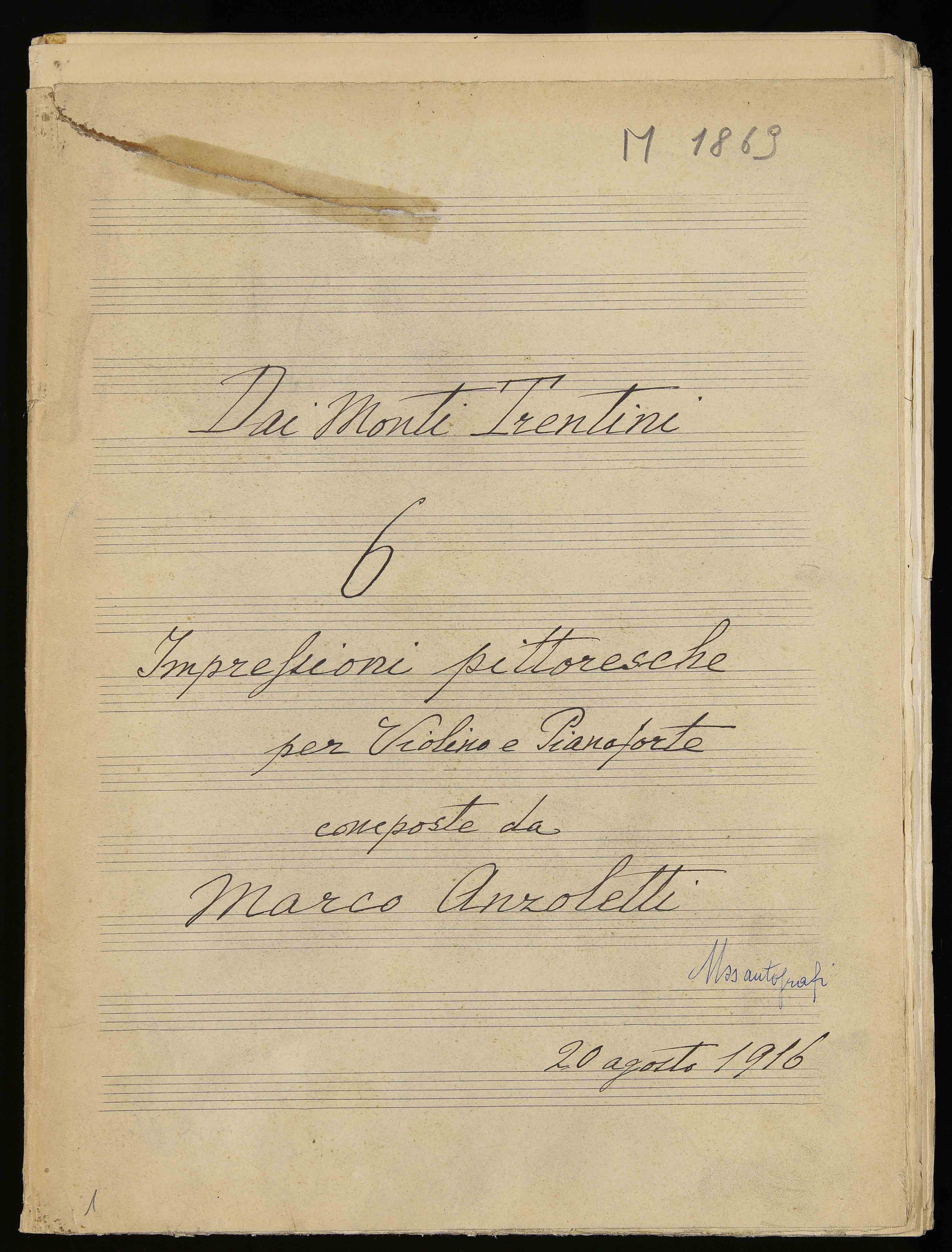 2 parti ([46] c.) ; 34 cm. Ricevuto in deposito dalla Società Filarmonica di Trento nel 1941. Manoscritto autografo. Contiene: Primavera montana ; Notte alpestre ; Pomeriggio estivo ; Lento ; Paesaggio d'inverno ; Allegro pastorale