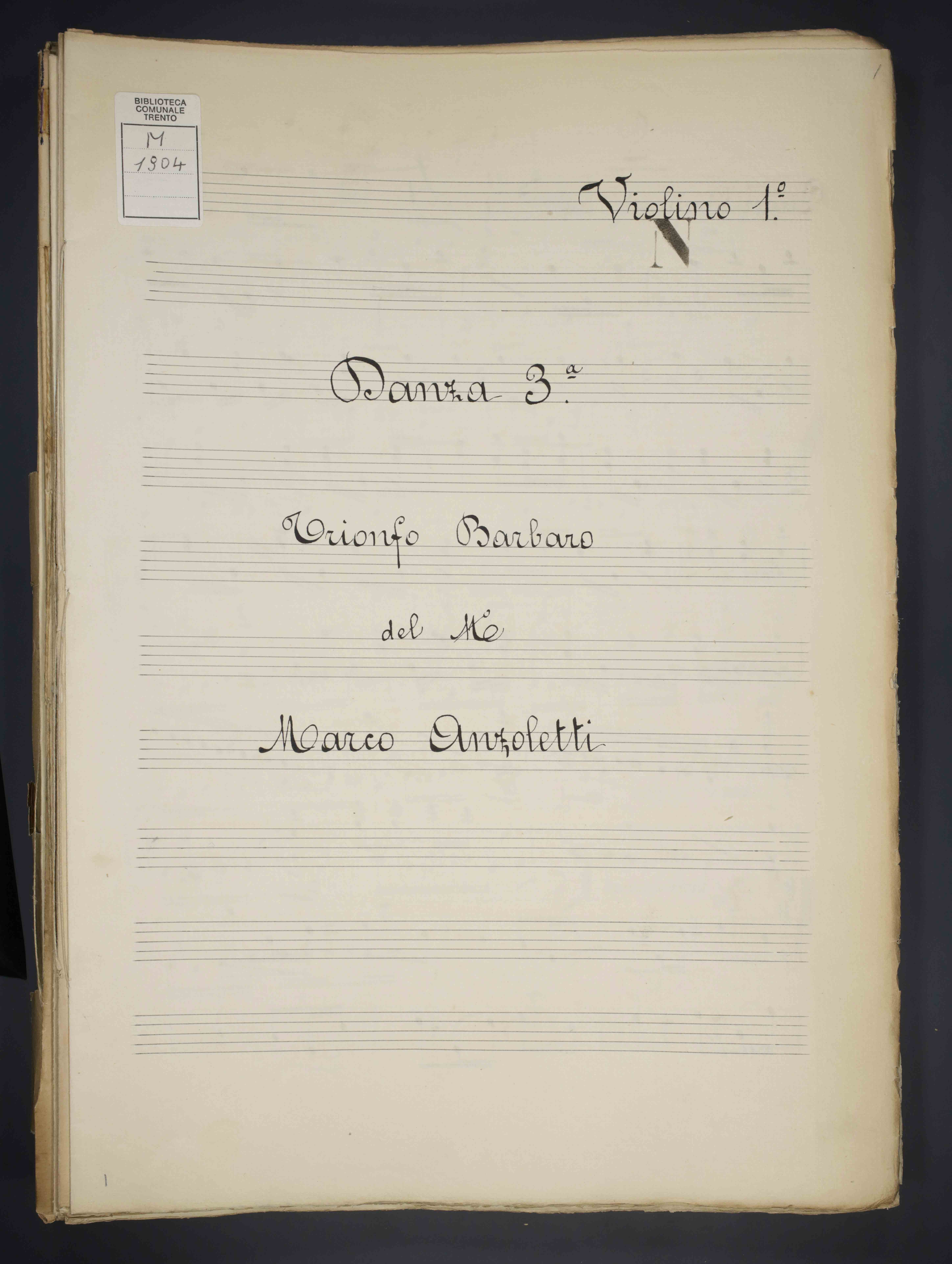 14 partiture ([43] c.) ; 34 cm + 28 parti ([65] c.). Ricevuto in deposito dalla Società Filarmonica di Trento nel 1941. Manoscritto autografo