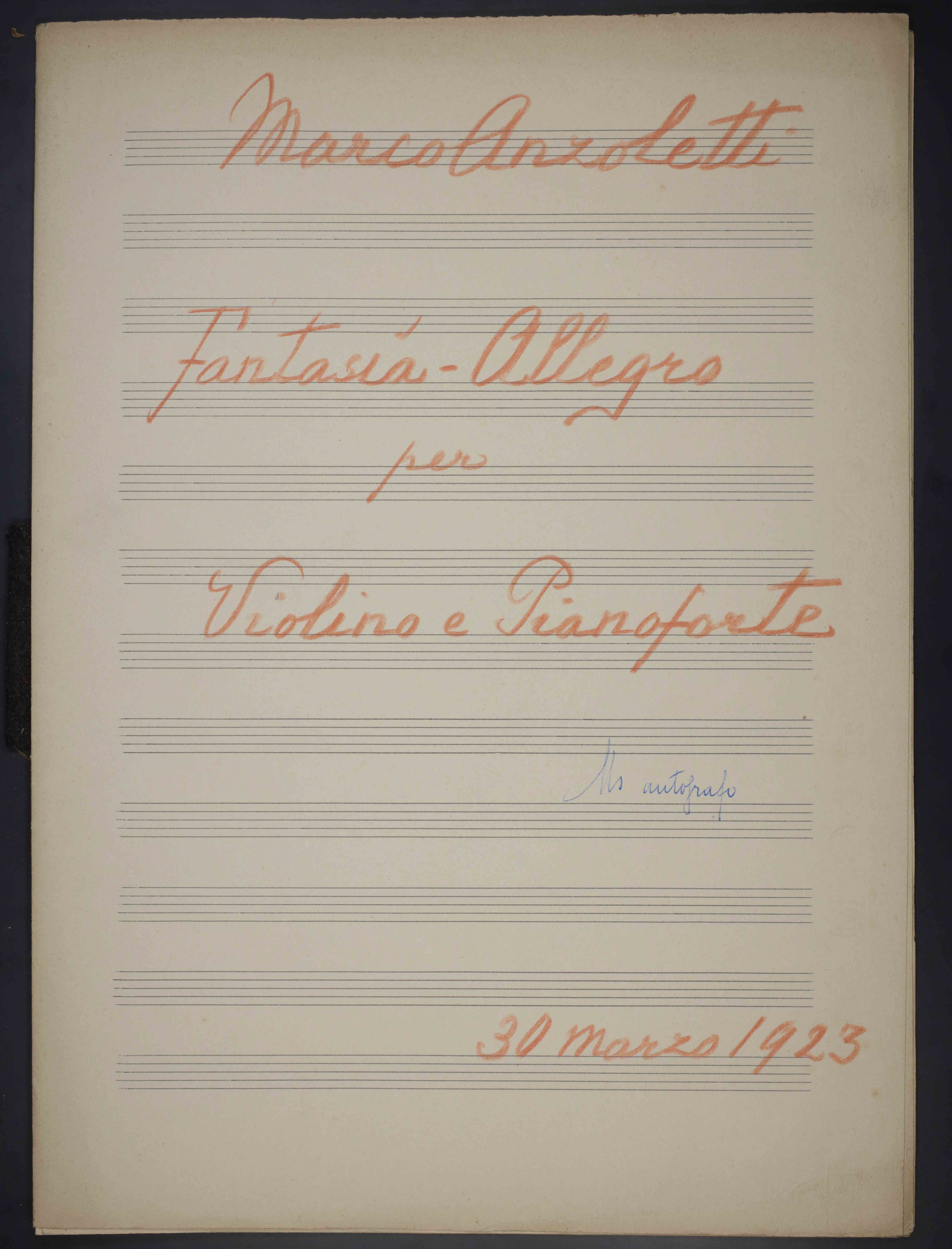 1 partitura ([2], 11, [2] p.) ; 33 cm. Ricevuto in deposito dalla Società Filarmonica di Trento nel 1941. Manoscritto autografo