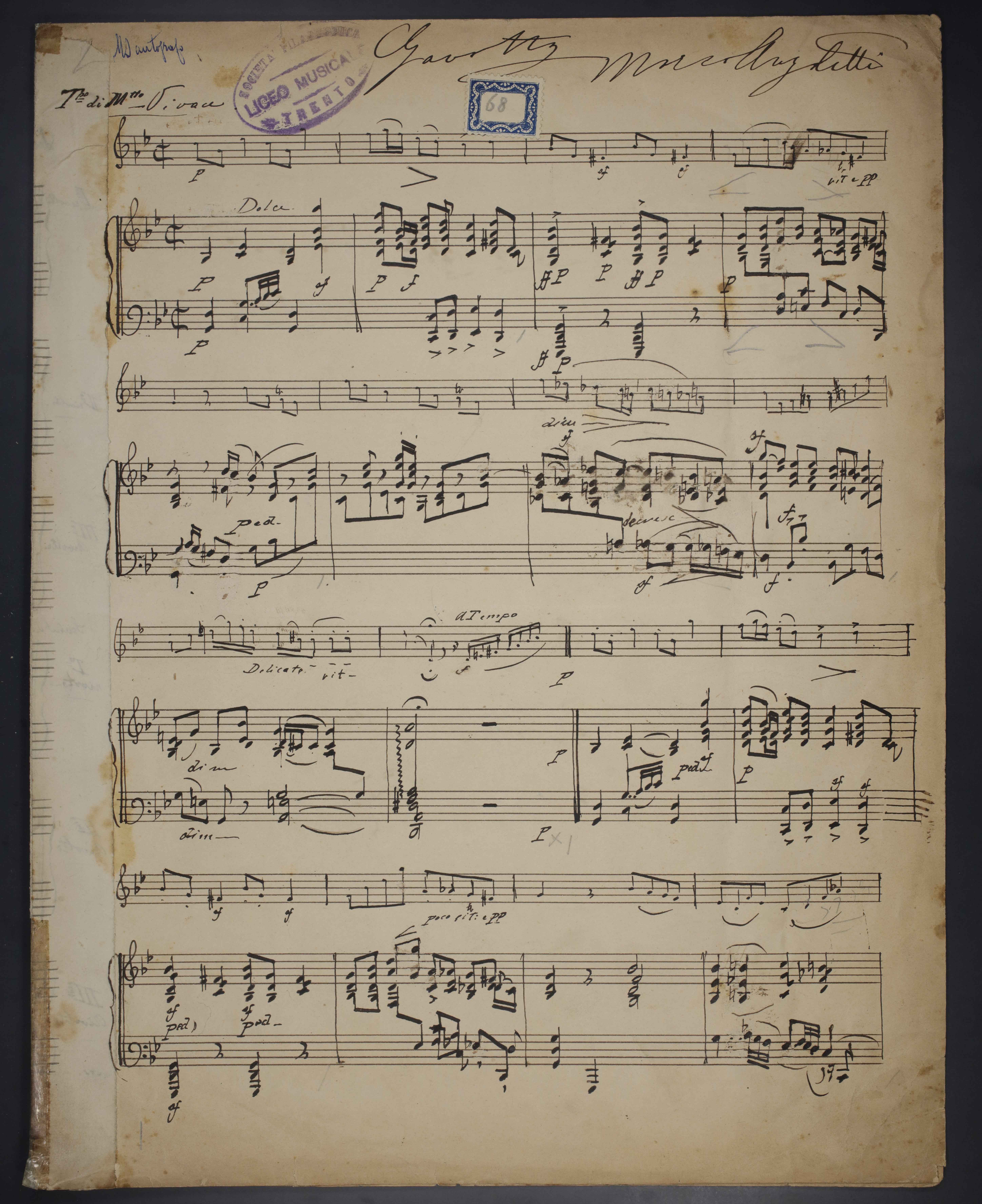 1 partitura ([2] c.) ; 33 cm. Ricevuto in deposito dalla Società Filarmonica di Trento nel 1941. Manoscritto autografo. Timbro del Liceo musicale - Società Filarmonica Trento a c. [1]r. Antica segnatura di collocazione sulla cop.: 68