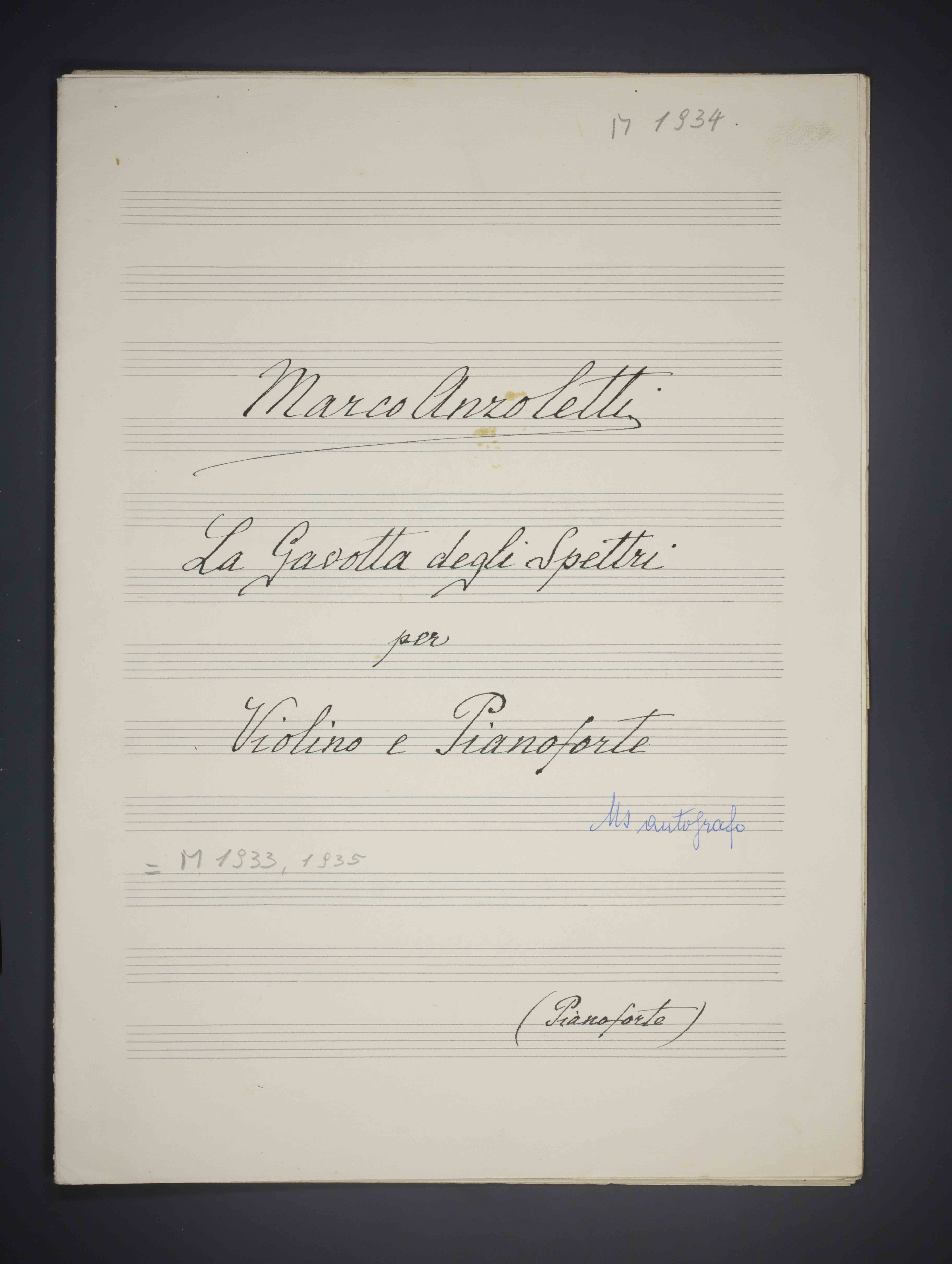 1 partitura ([2], 10, [2] p.) ; 33 cm + 1 parte ([2], 4 [i.e. 3], [2] p. Ricevuto in deposito dalla Società Filarmonica di Trento nel 1941. Manoscritto autografo