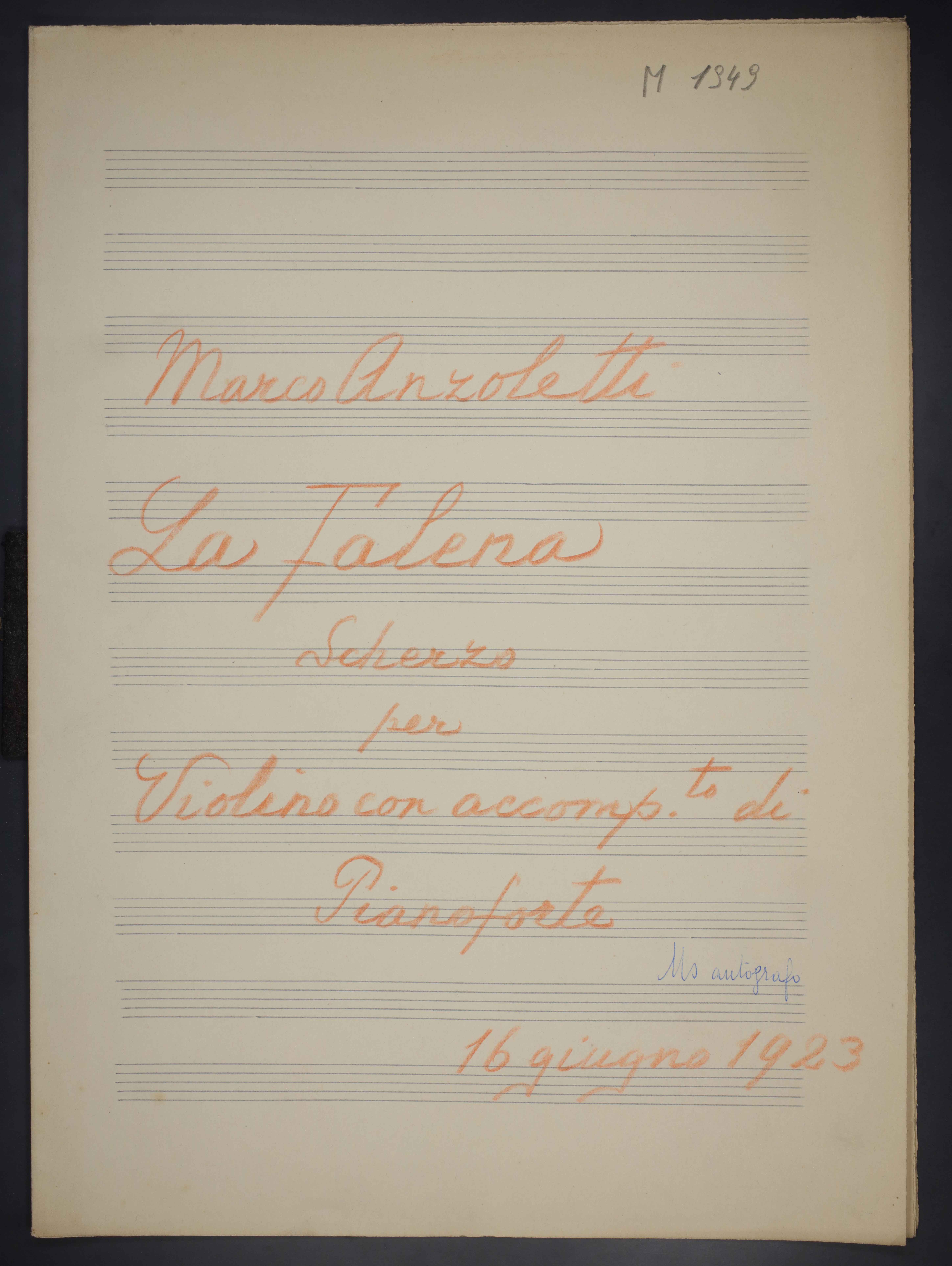 1 partitura ([2], 4, [2] p.) ; 33 cm. Ricevuto in deposito dalla Società Filarmonica di Trento nel 1941. Manoscritto autografo