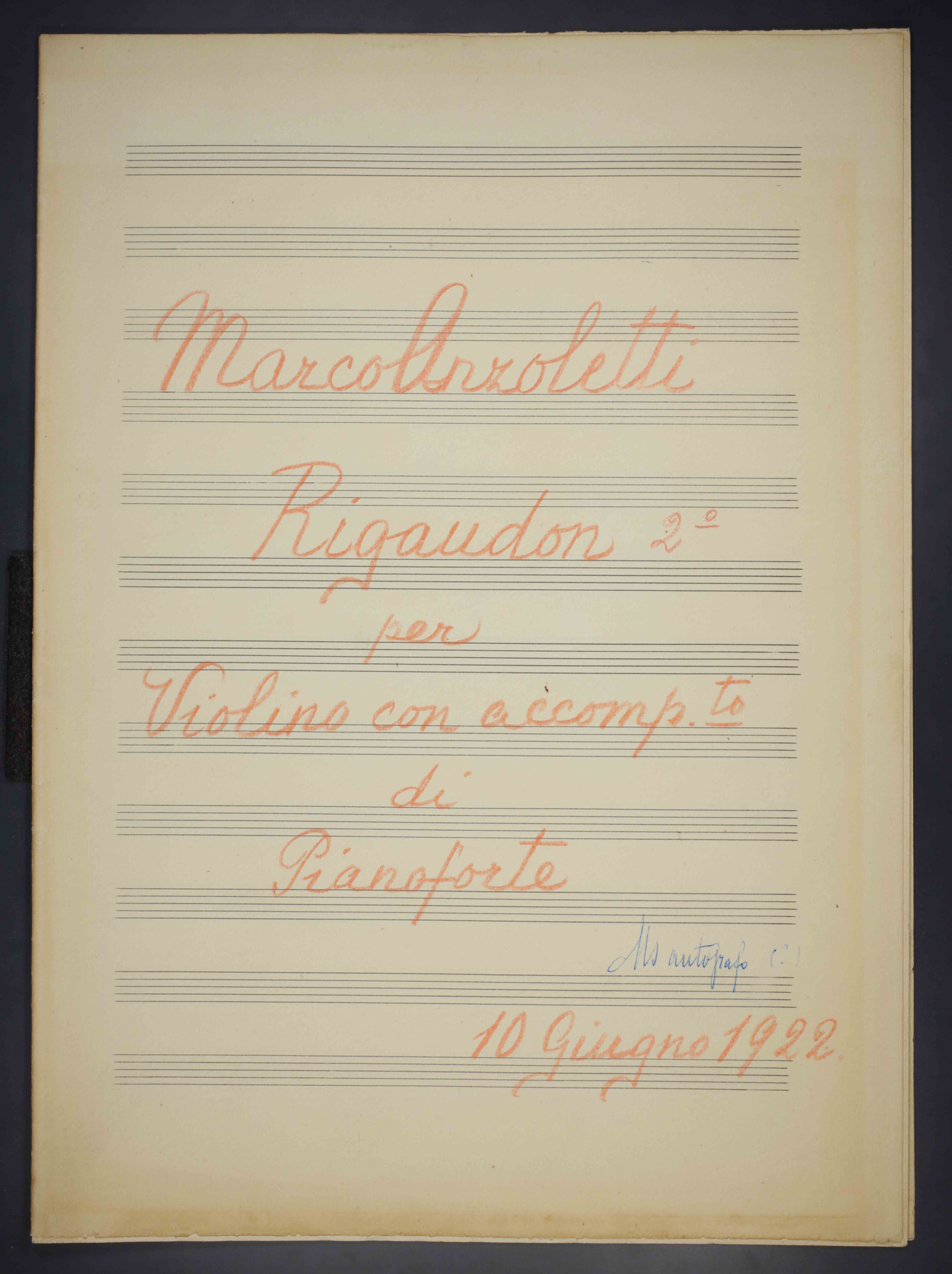1 partitura ([5] c.) ; 33 cm. Ricevuto in deposito dalla Società Filarmonica di Trento nel 1941. Manoscritto autografo