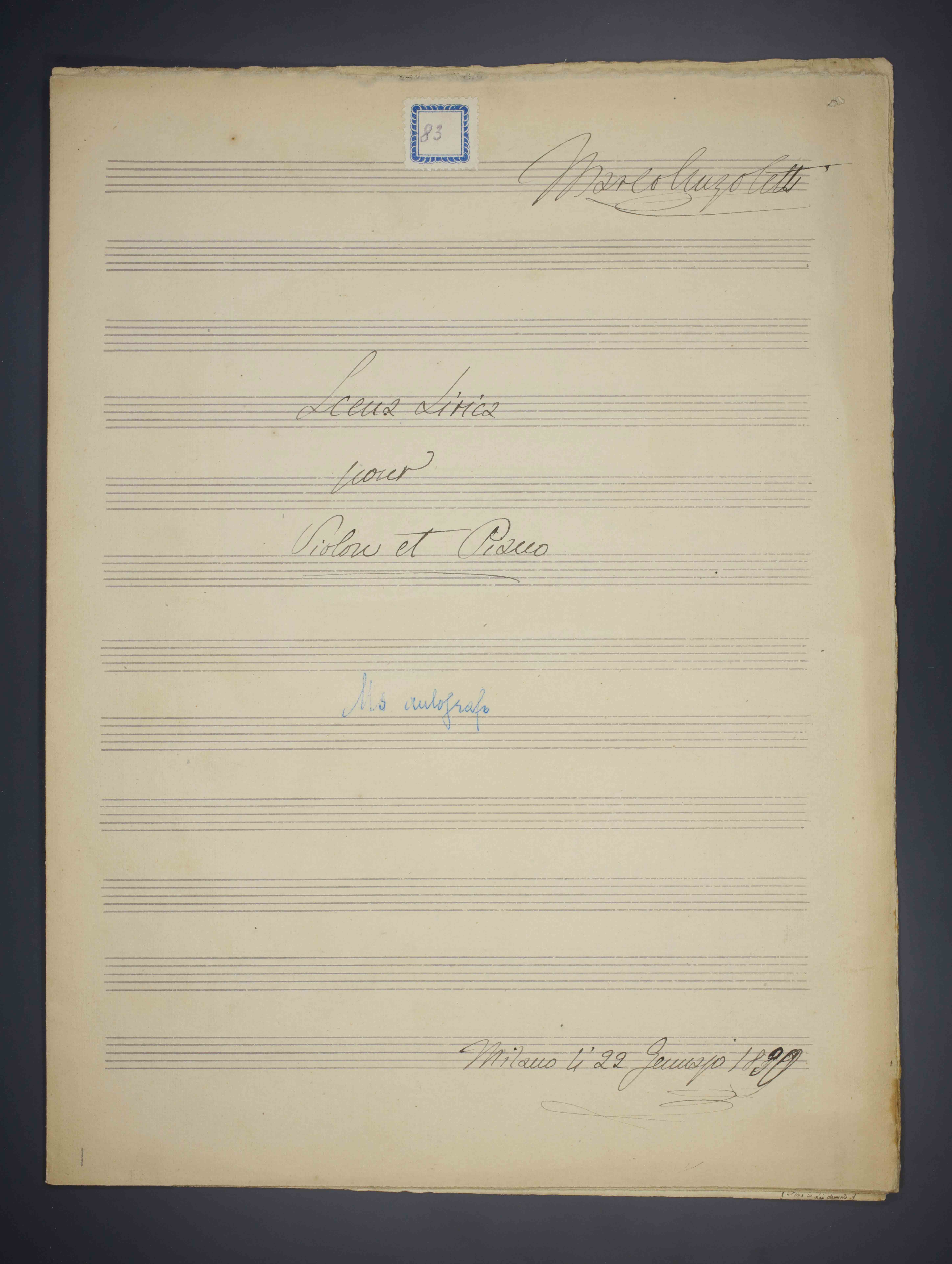 1 partitura ([4] c.) ; 33 cm. Ricevuto in deposito dalla Società Filarmonica di Trento nel 1941. Manoscritto autografo. Antica segnatura di collocazione sulla cop.: 83