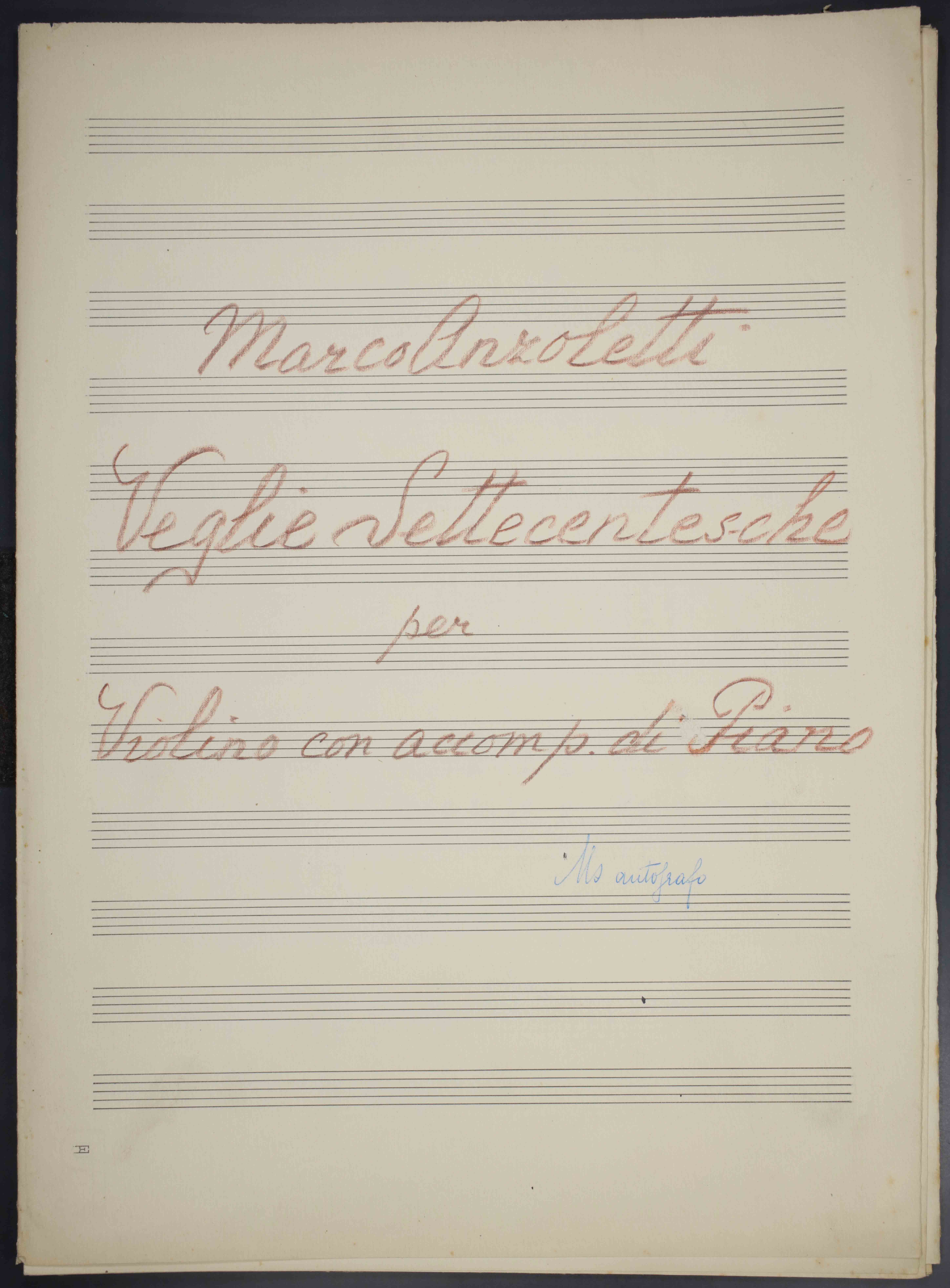 1 partitura ([2], 19, [2] p.) ; 33 cm. Ricevuto in deposito dalla Società Filarmonica di Trento nel 1941. Manoscritto autografo