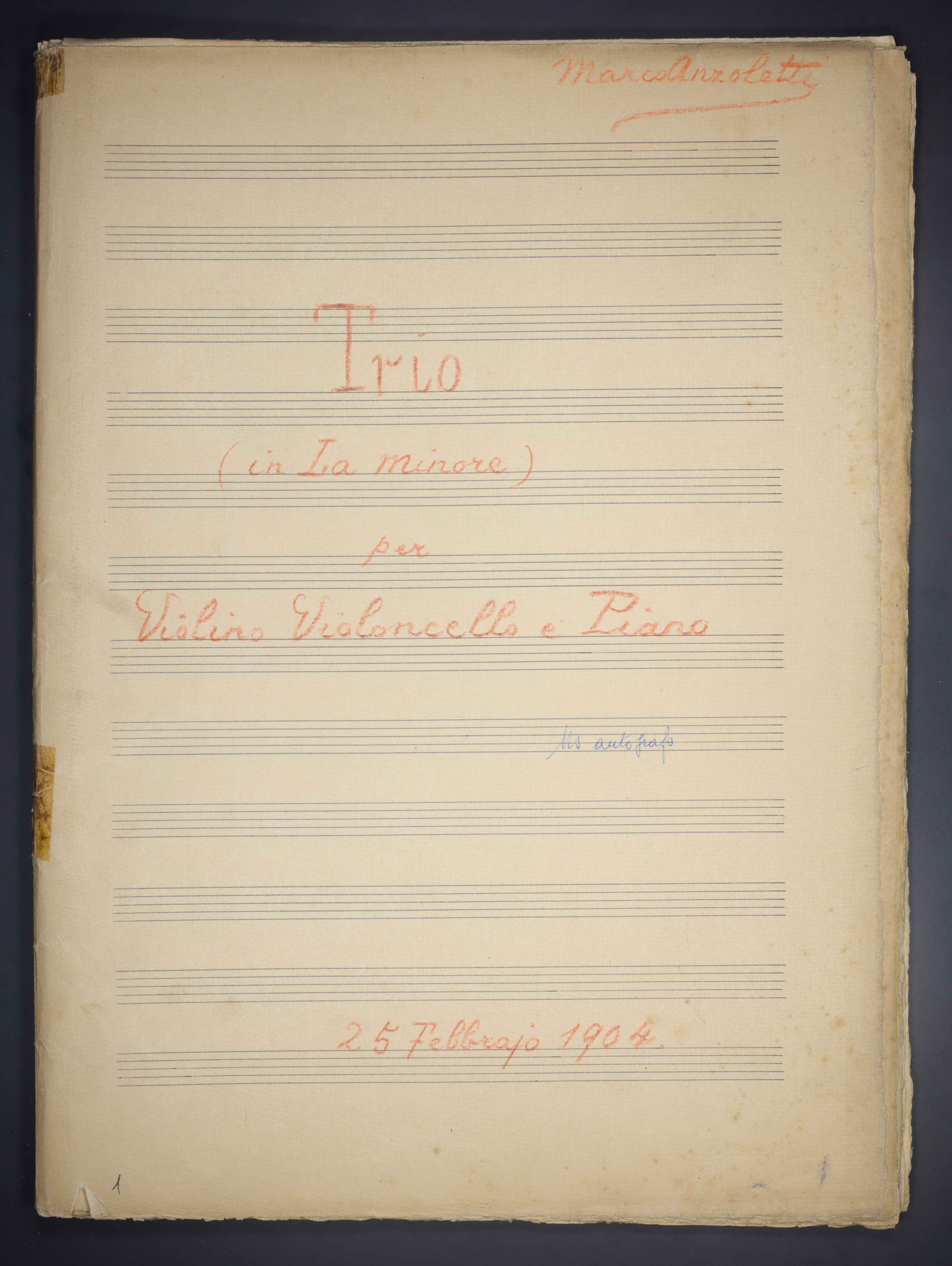 1 partitura ([38] c.) ; 33 cm. Ricevuto in deposito dalla Società Filarmonica di Trento nel 1941. Manoscritto autografo