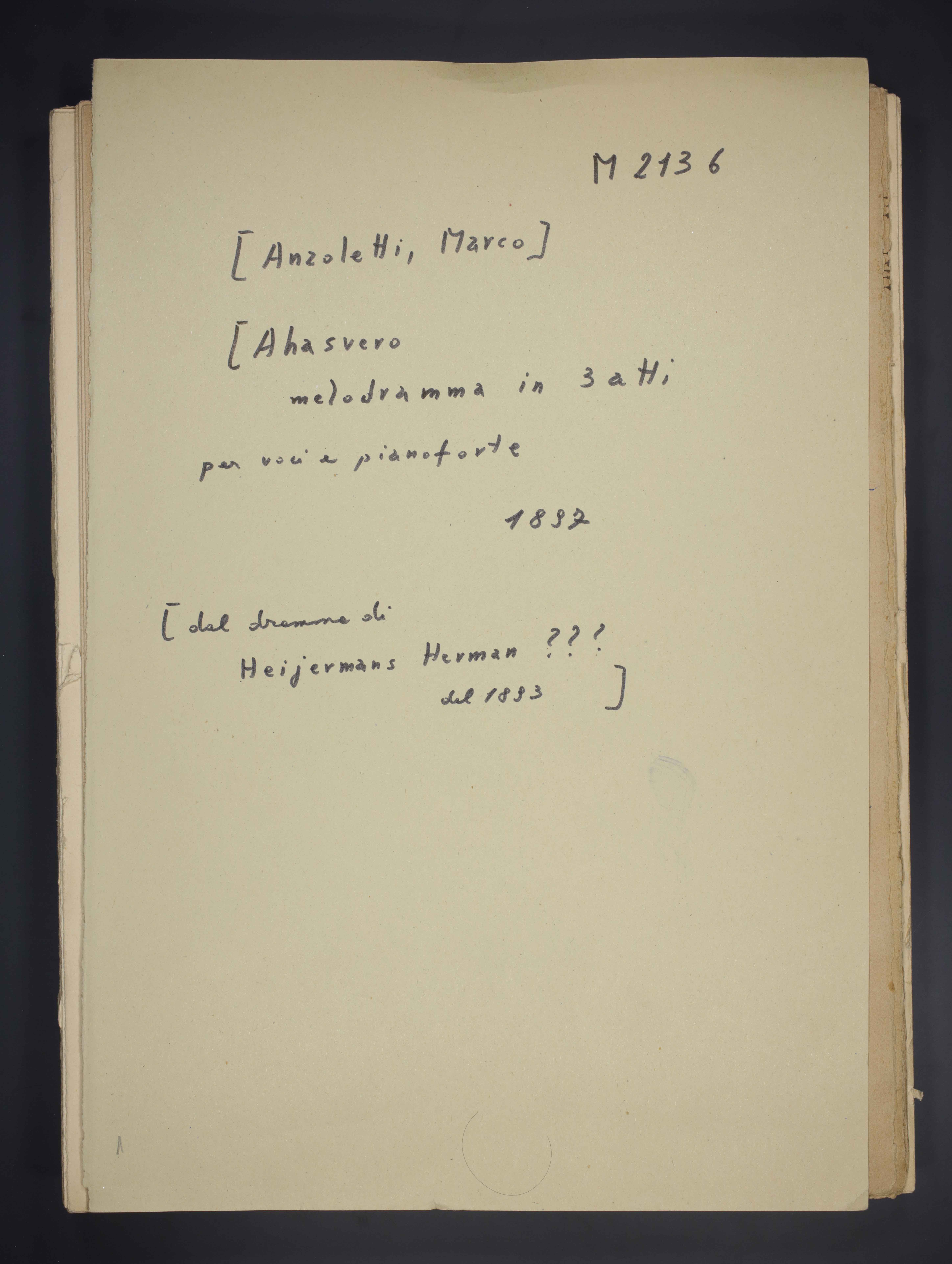 | Ahasvero. Melodramma. +Vv, Coro, orch. Rid. +Vv,Coro, pf |