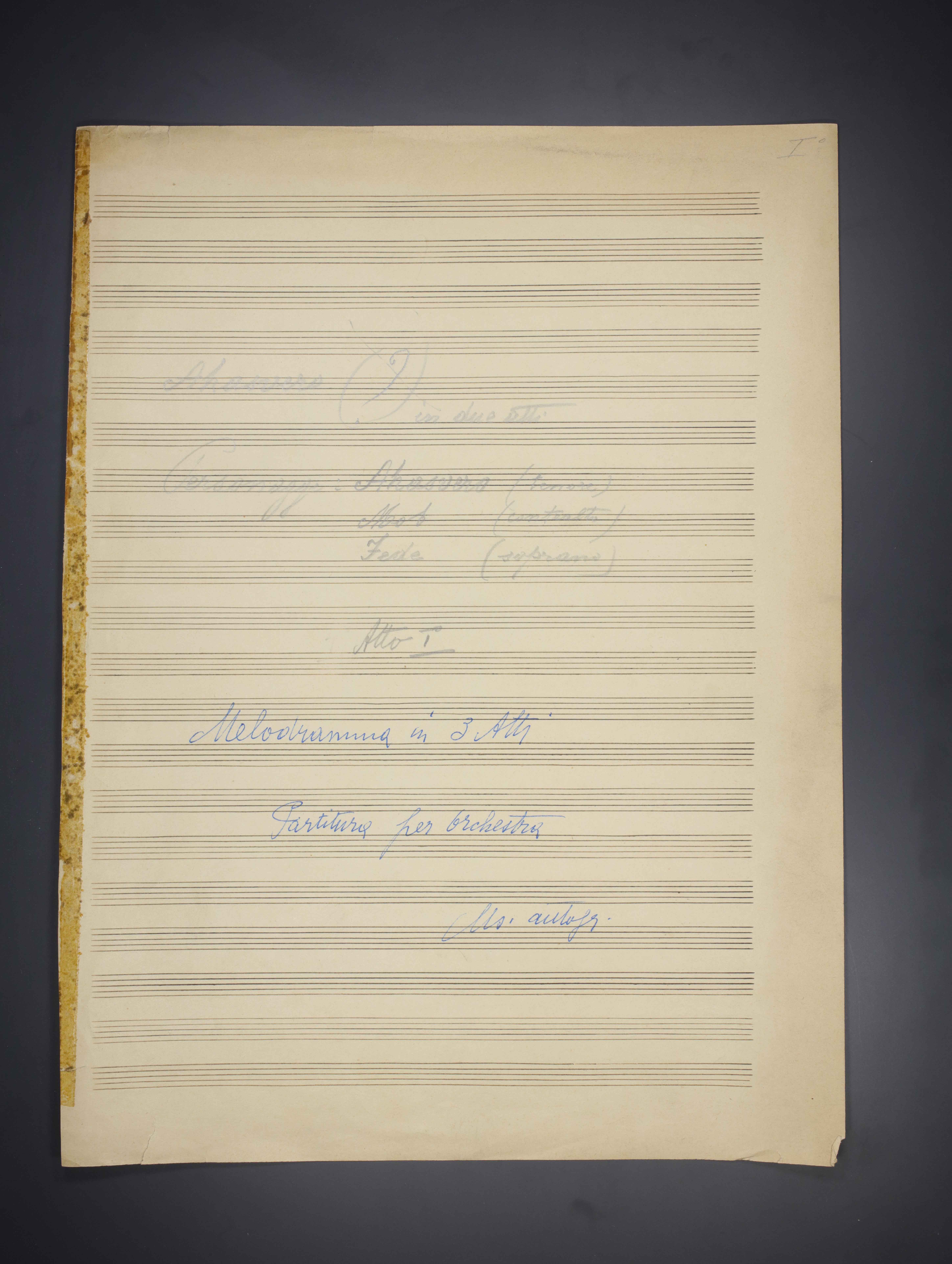 1 partitura in 3 v. ([2], 151, [2]; [2], 227, [3]; [2], 124, [2] p.) ; 33 cm. Ricevuto in deposito dalla Società Filarmonica di Trento nel 1941. Manoscritto autografo