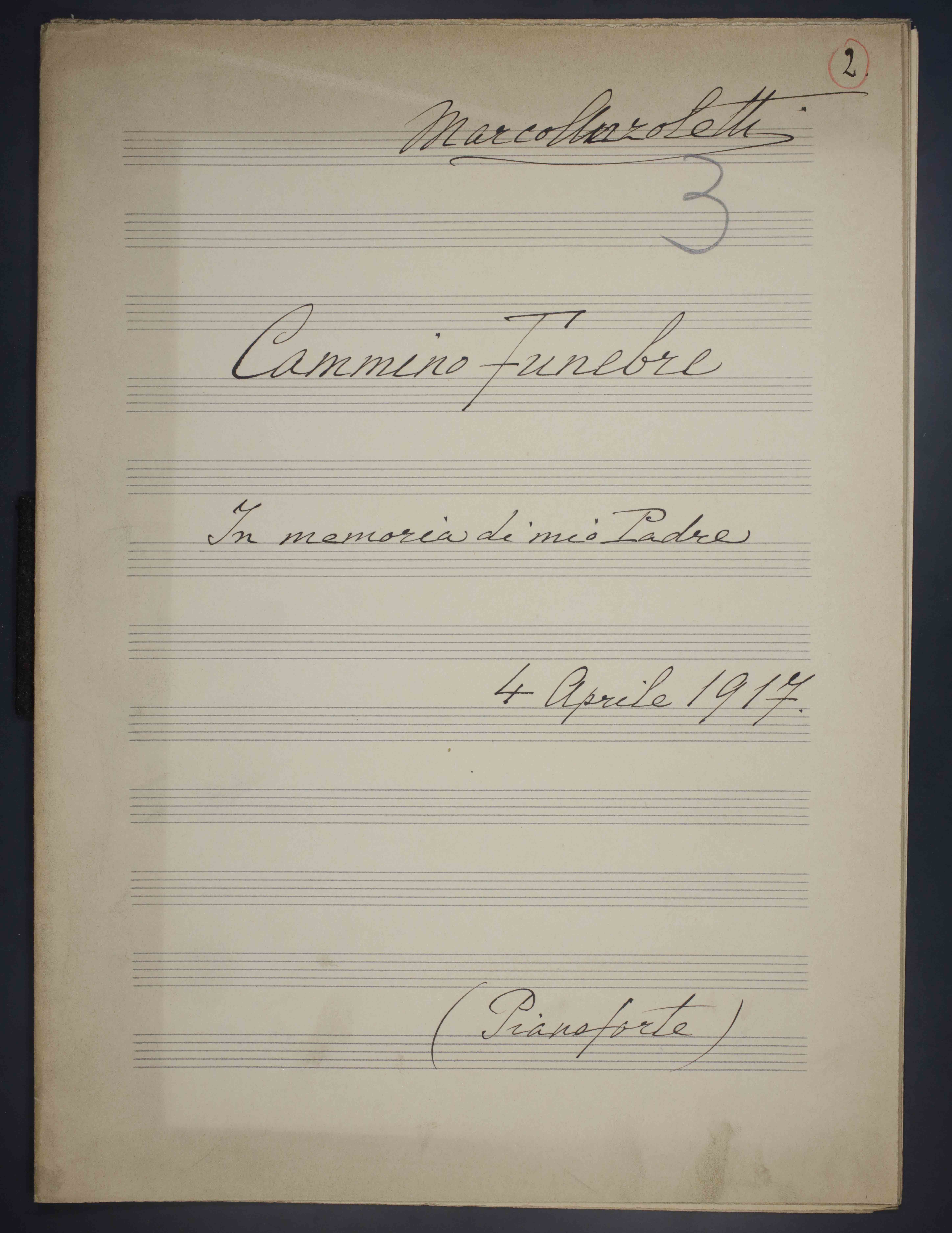 1 partitura [2], 14, [2] ; 34 cm. Ricevuto in deposito dalla Società Filarmonica di Trento nel 1941. Manoscritto autografo. Sulla coperta: In memoria di mio padre