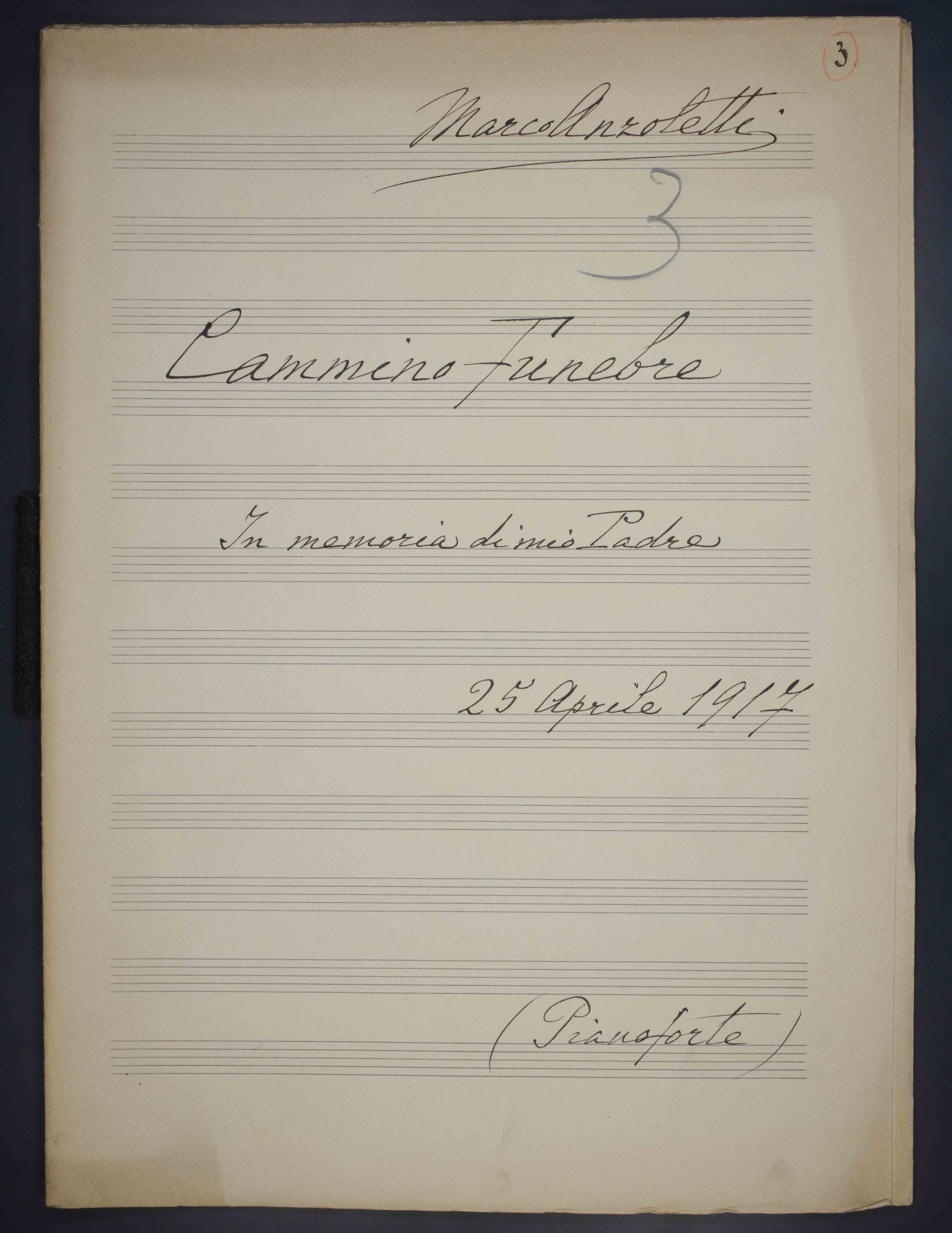 1 partitura [2], 16, [2] ; 34 cm. Ricevuto in deposito dalla Società Filarmonica di Trento nel 1941. Manoscritto autografo. Sulla coperta: In memoria di mio padre