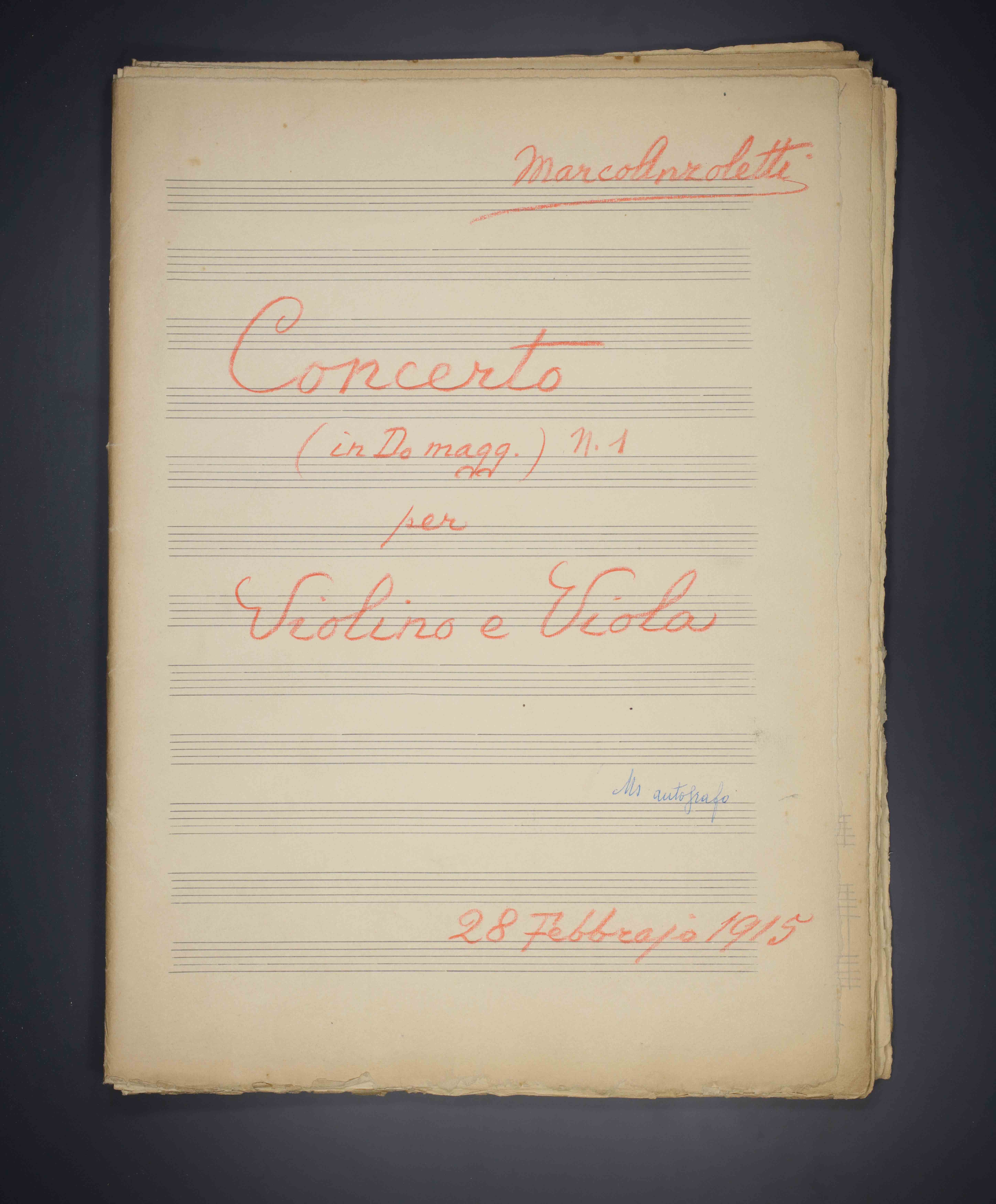 1 partitura ([2], 65, [3] p.) ; 33 cm. Ricevuto in deposito dalla Società Filarmonica di Trento nel 1941. Manoscritto autografo
