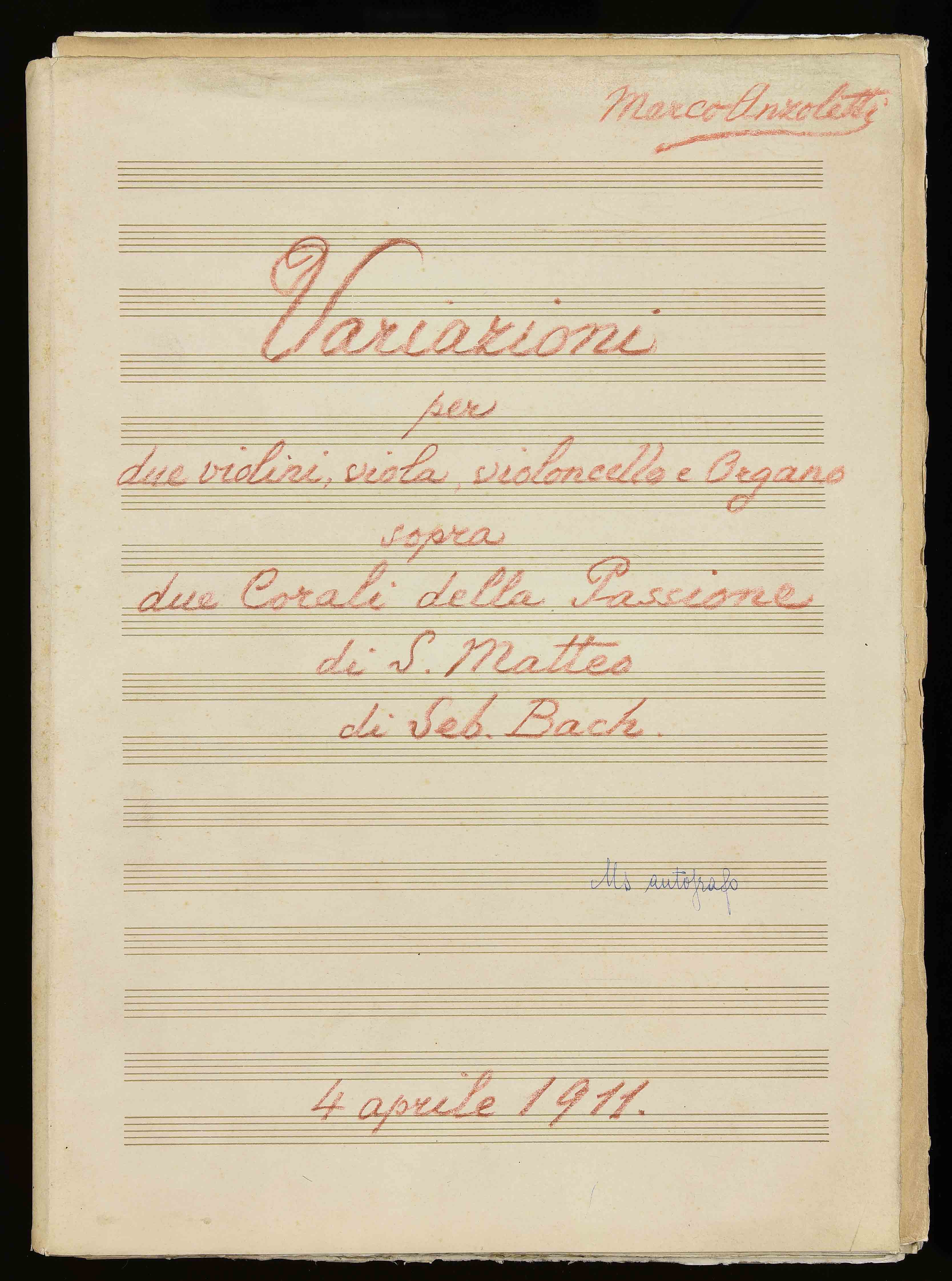 | Variazioni per due violini, viola, violoncello e organo sopra due corali della Passione di S. Matteo di Seb. Bach |