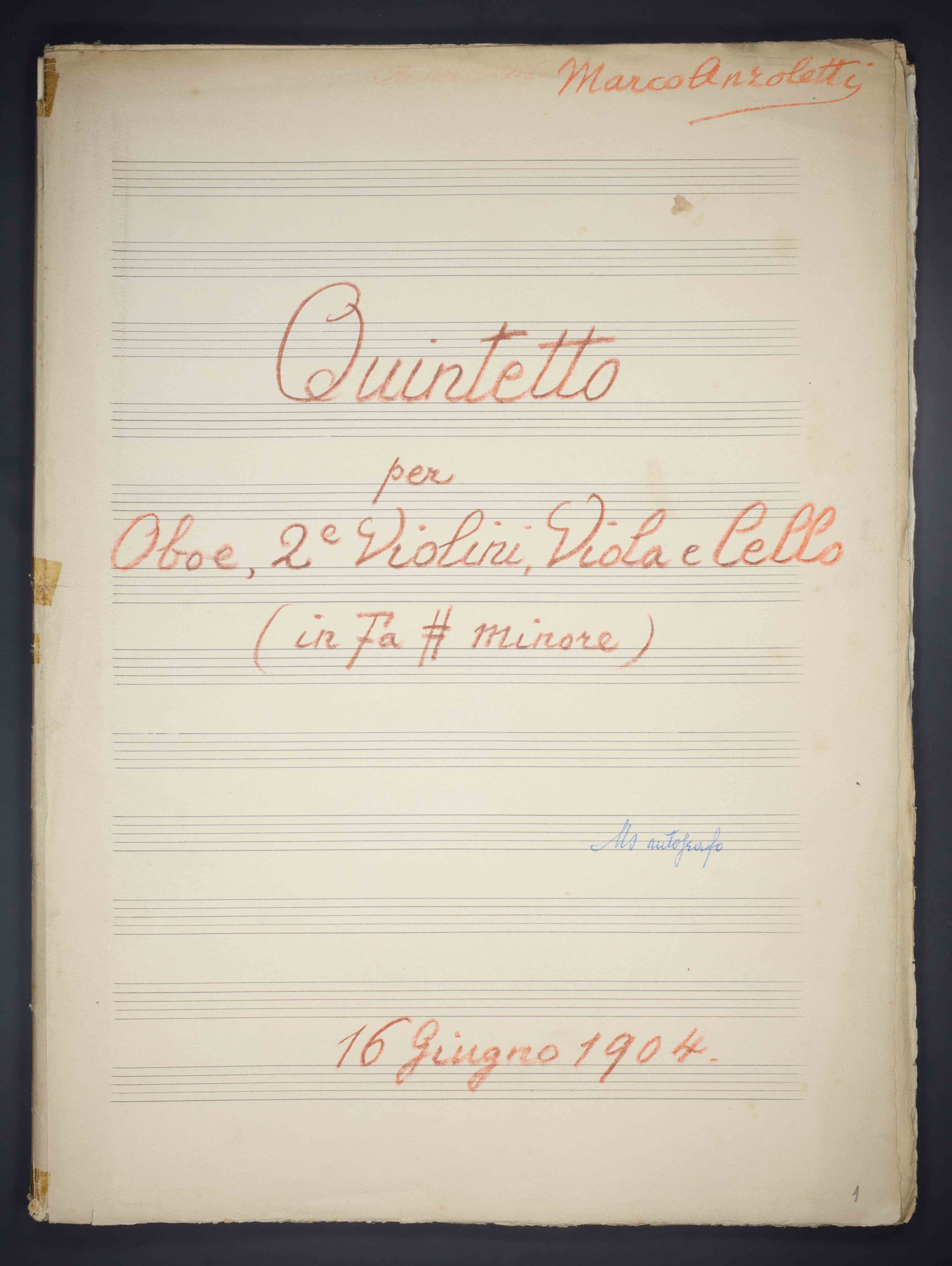 1 partitura ([46] c.) ; 33 cm. Ricevuto in deposito dalla Società Filarmonica di Trento nel 1941. Manoscritto autografo