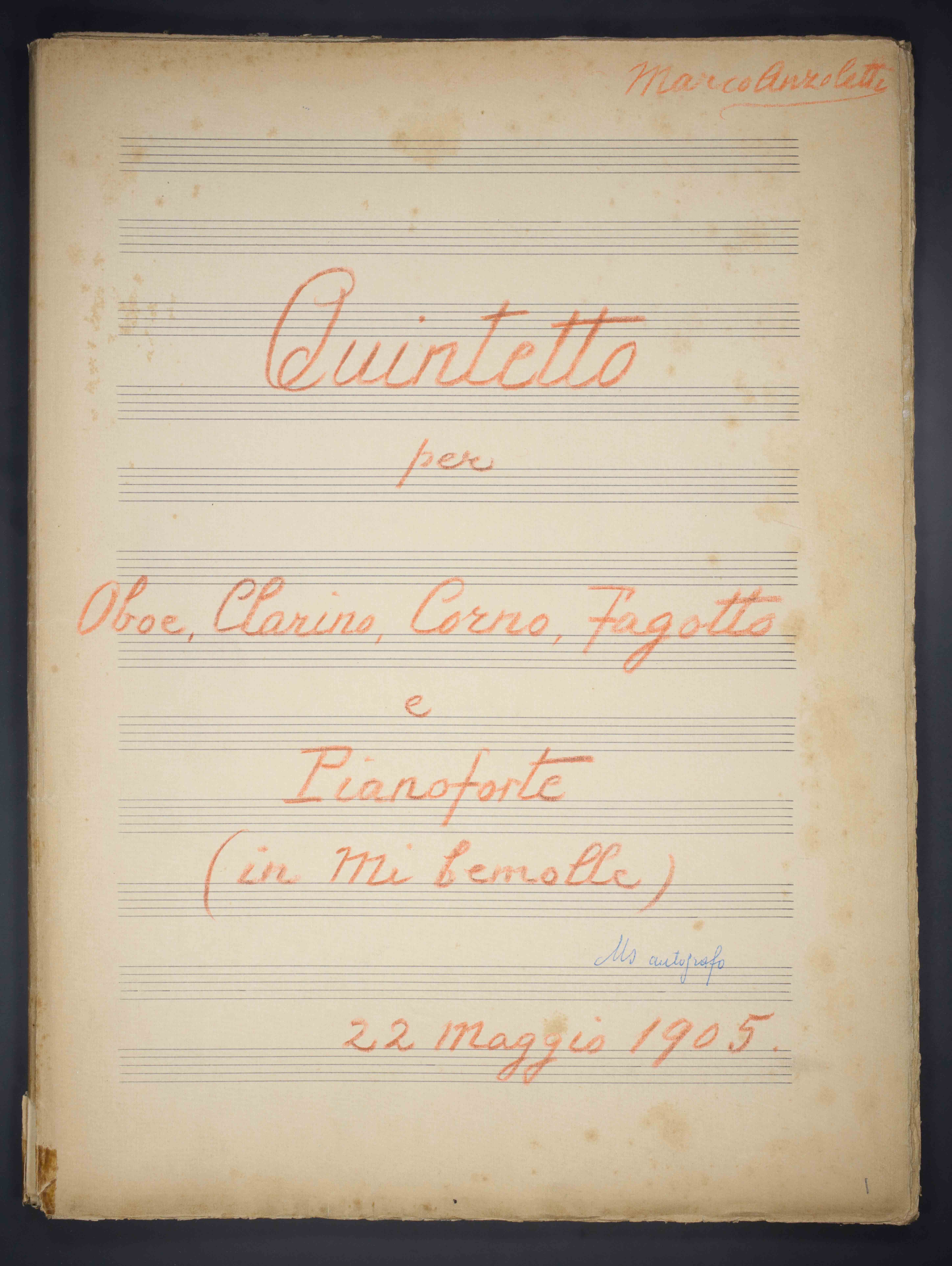 | Quintetti. ob, cl, cor, fag, pf. Mi bem. |