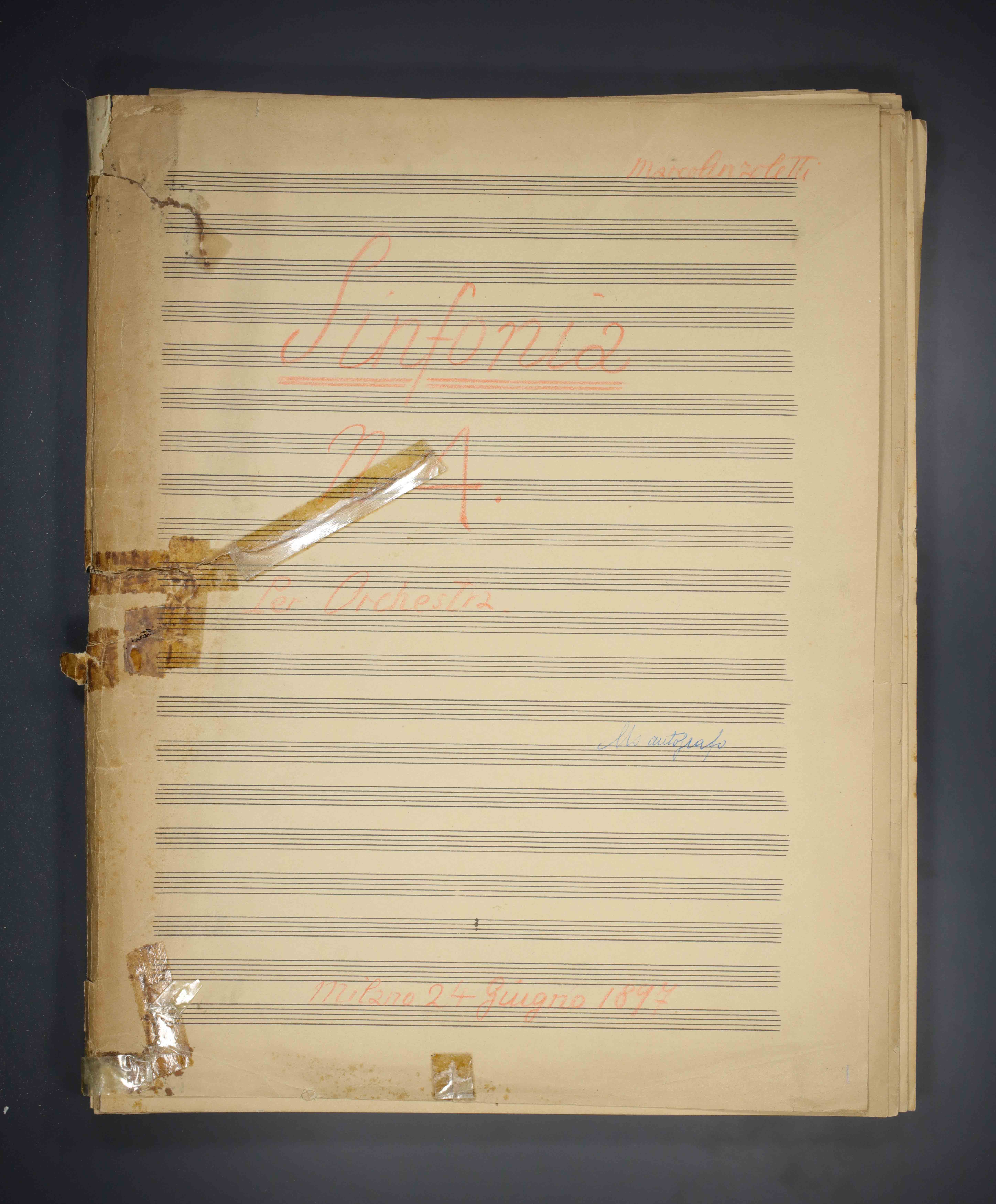 1 partitura ([122] c.) ; 33 cm. Ricevuto in deposito dalla Società Filarmonica di Trento nel 1941. Manoscritto autografo
