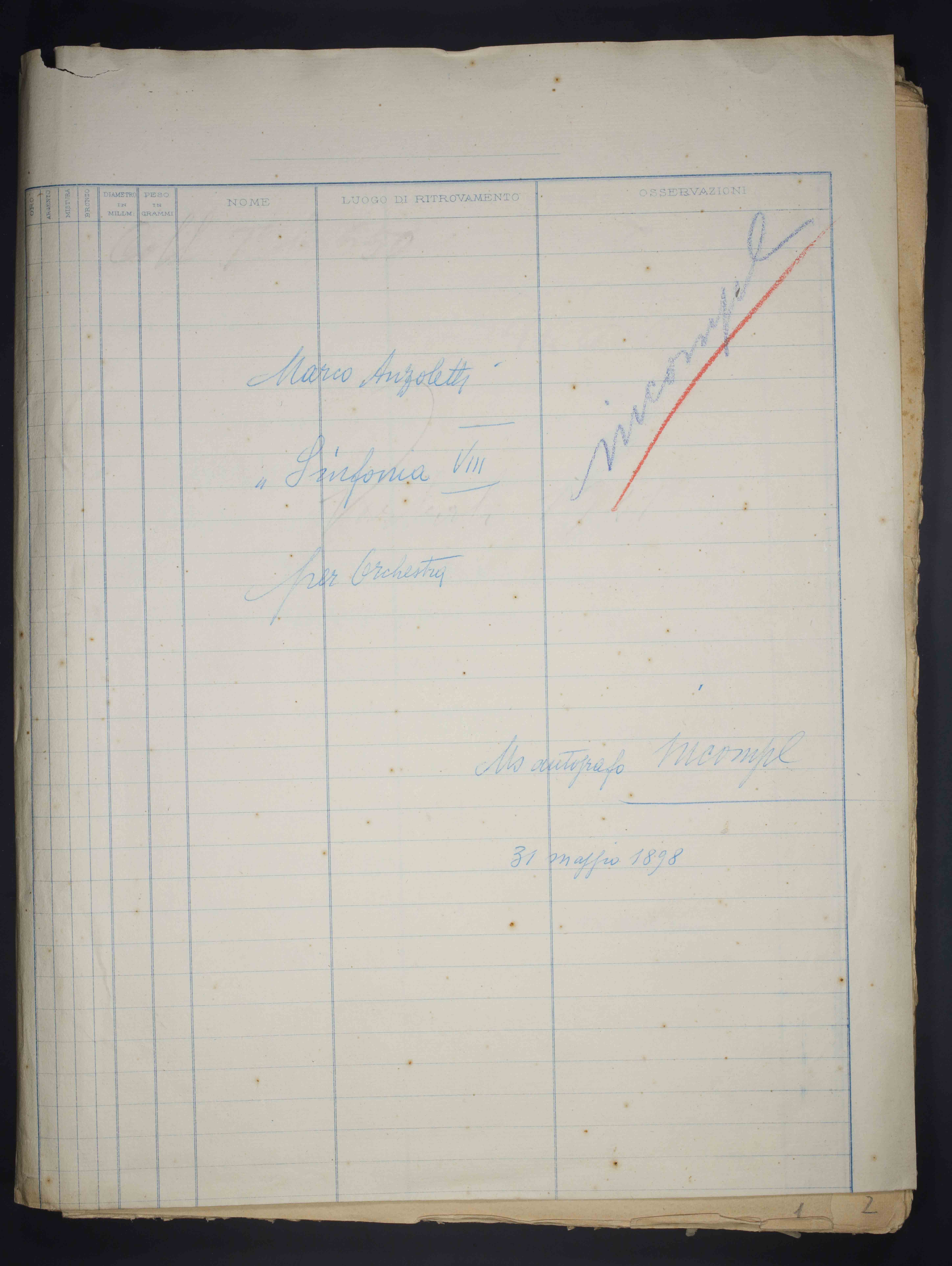 1 partitura ([96] c.) ; 33 cm. Ricevuto in deposito dalla Società Filarmonica di Trento nel 1941. Manoscritto autografo. Mutilo