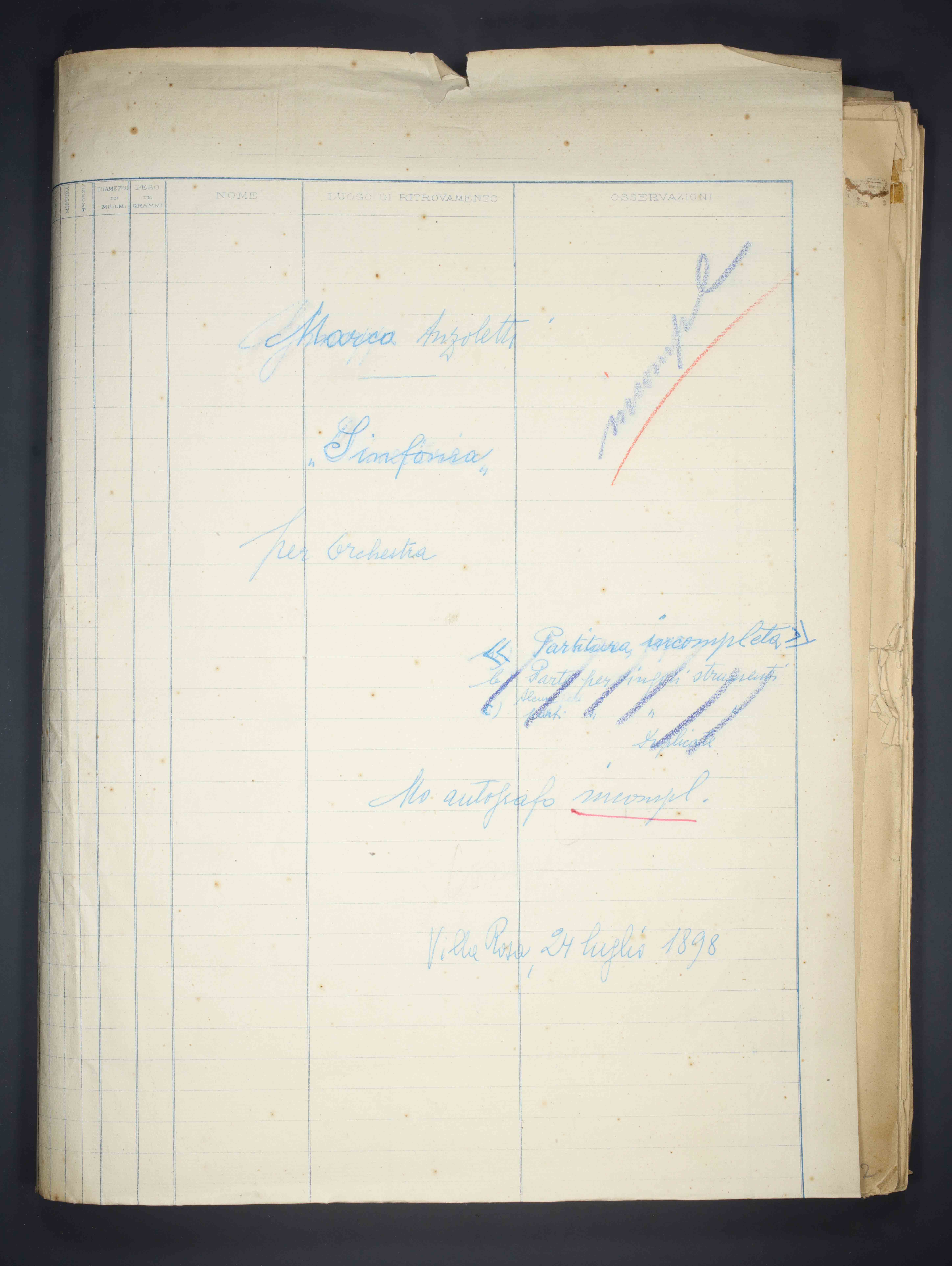 1 partitura ([100] c.) ; 33 cm. Ricevuto in deposito dalla Società Filarmonica di Trento nel 1941. Manoscritto autografo