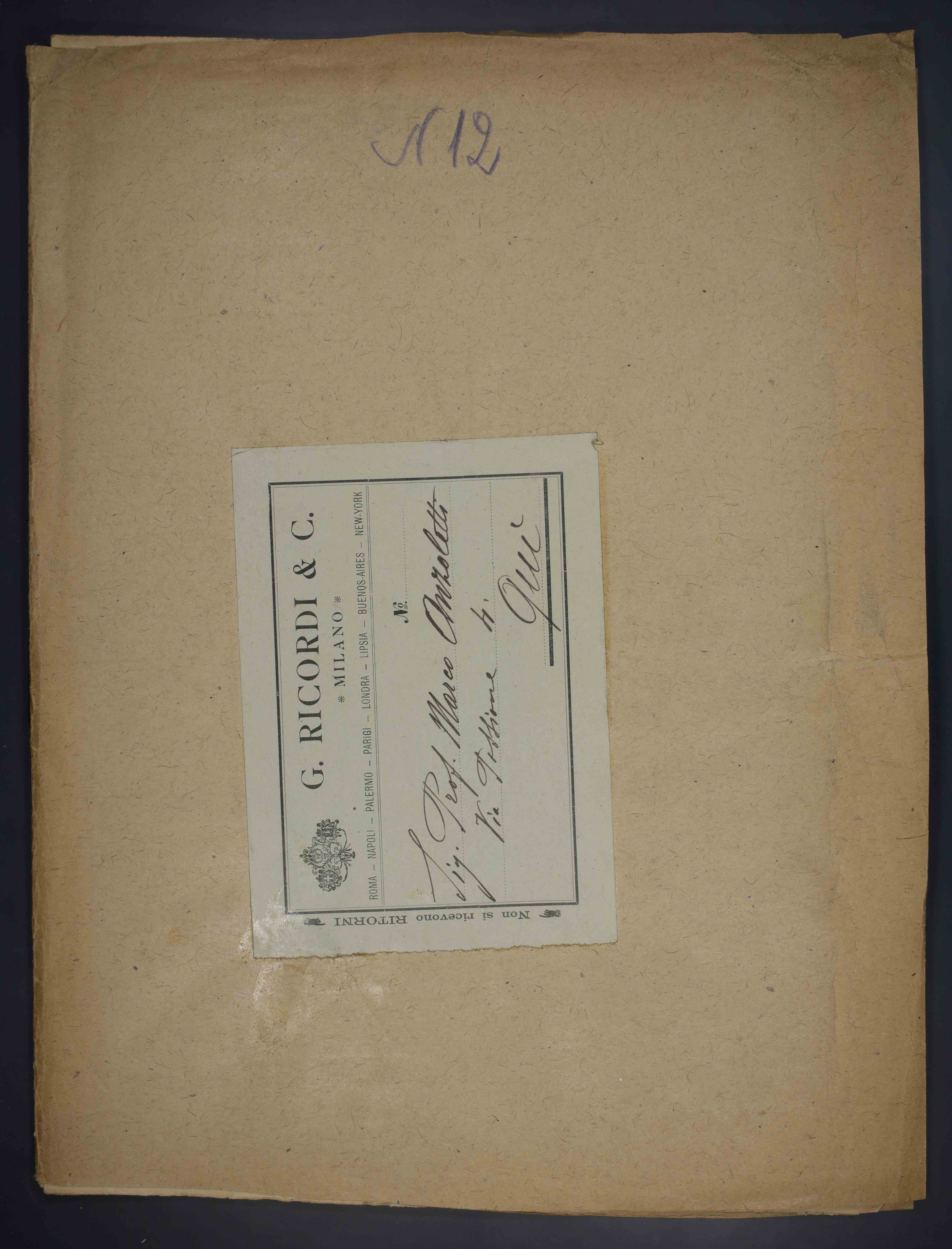 1 partitura (7, [1] p.) ; 33 cm + 3 parti ([6] c.). Ricevuto in deposito dalla Società Filarmonica di Trento nel 1941. Manoscritto autografo