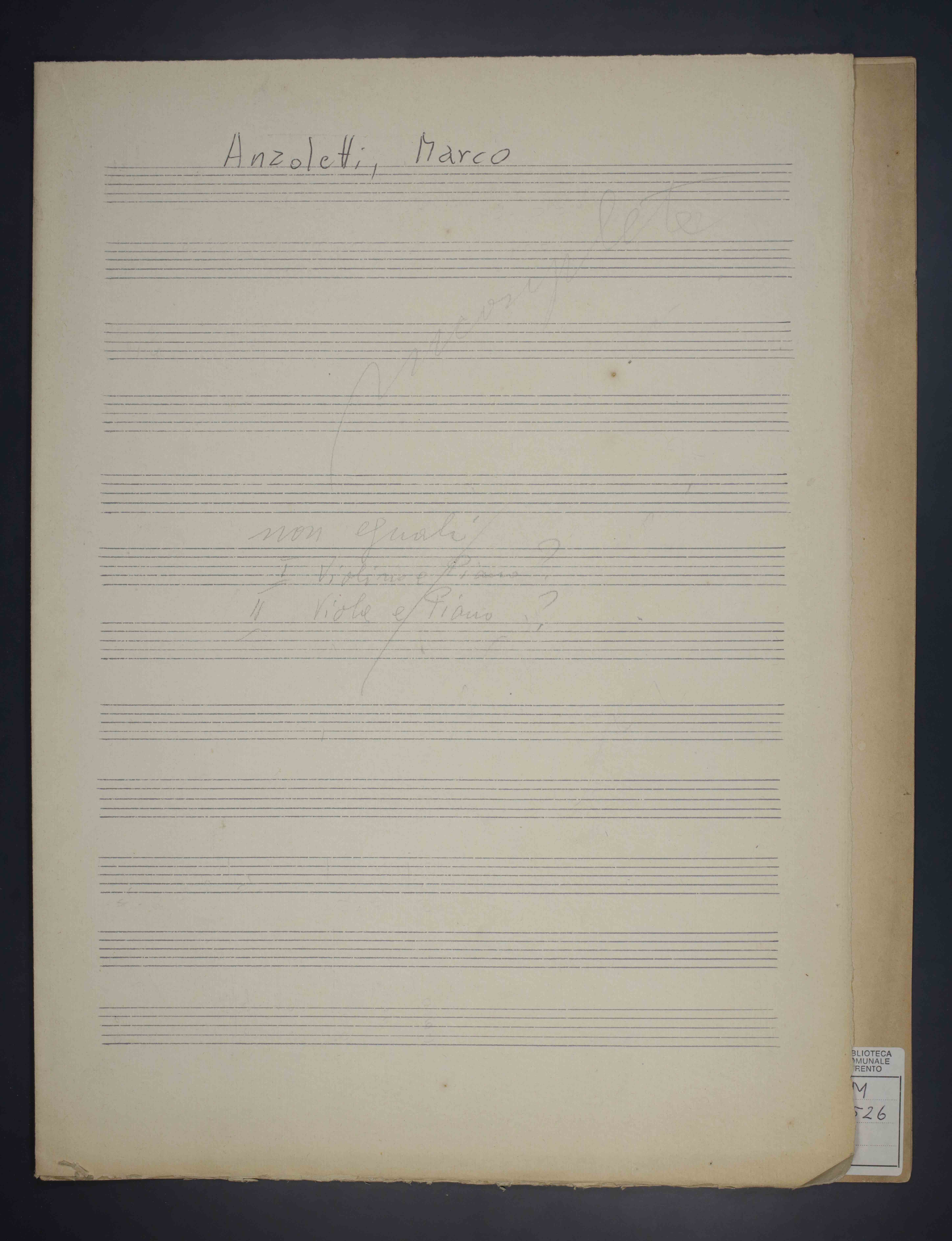 1 partitura ([4] c.) ; 33 cm. Ricevuto in deposito dalla Società Filarmonica di Trento nel 1941. Manoscritto autografo. Timbro del Liceo musicale - Società Filarmonica Trento a c. 1r. Antica segnatura di collocazione a c. 1r: 125