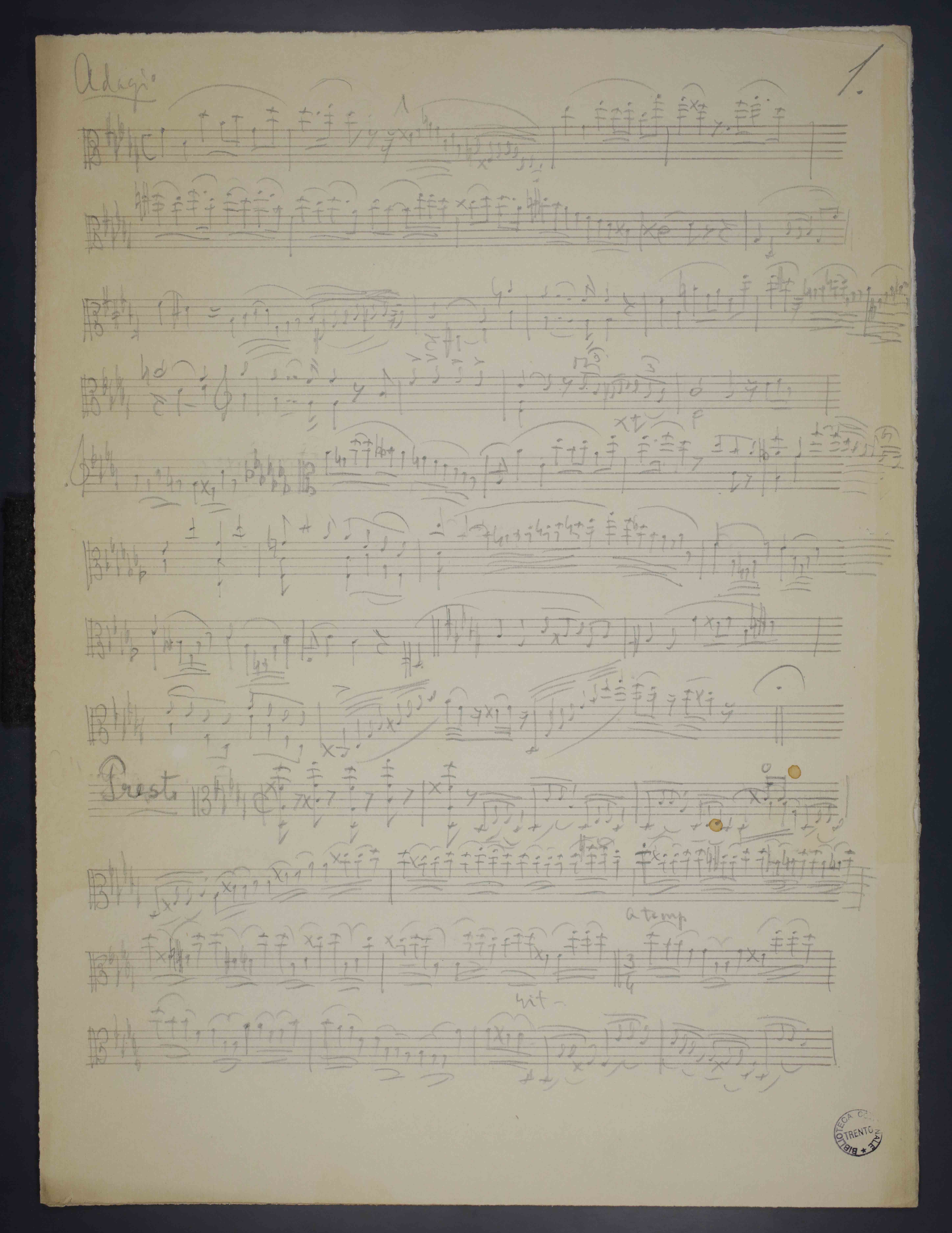 2 c. ; 33 cm. Ricevuto in deposito dalla Società Filarmonica di Trento nel 1941. Manoscritto autografo