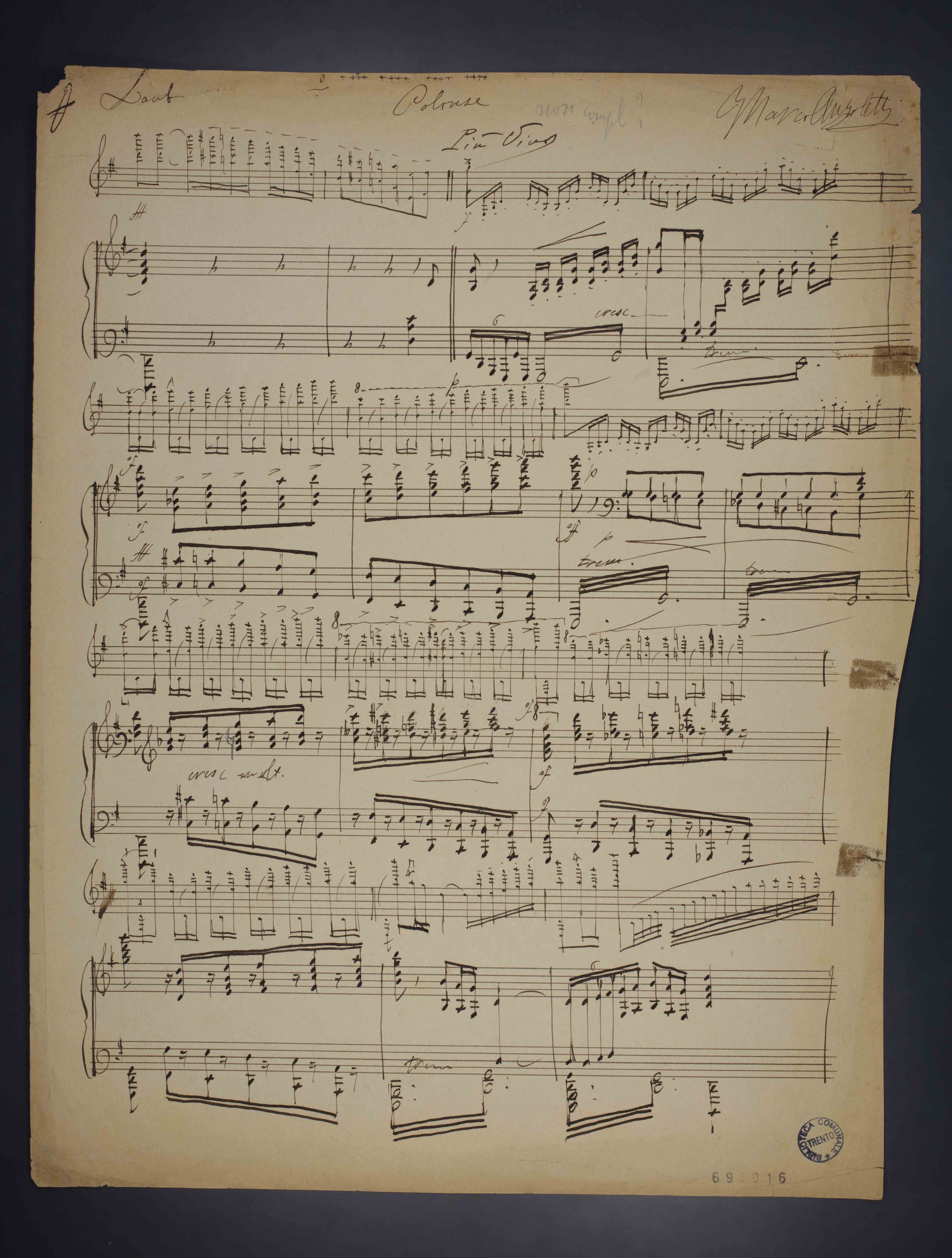 1 partitura ([1] c.) ; 33 cm. Ricevuto in deposito dalla Società Filarmonica di Trento nel 1941. Manoscritto autografo