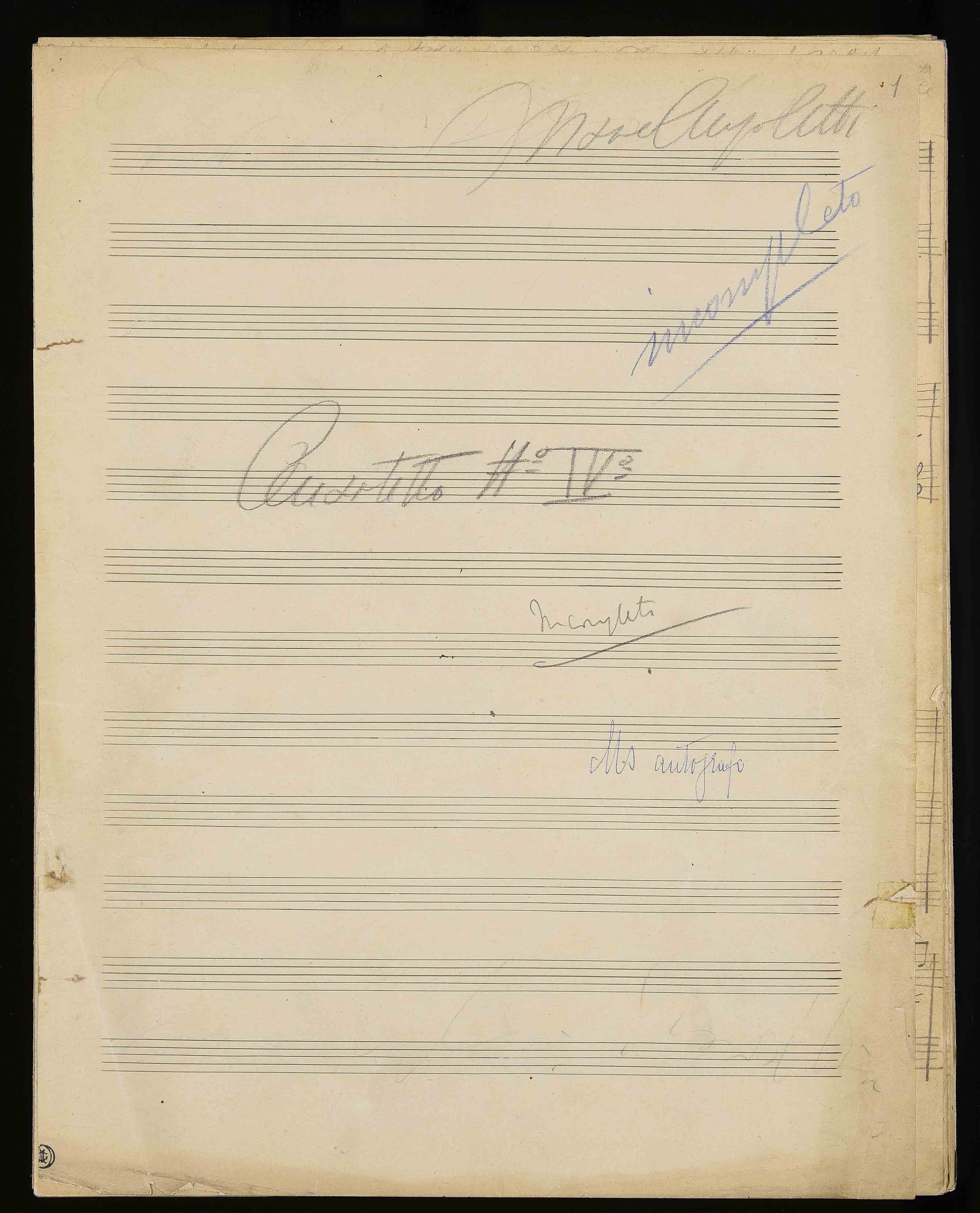 1 partitura ([75] c.) ; 33 cm. Ricevuto in deposito dalla Società Filarmonica di Trento nel 1941. Manoscritto autografo