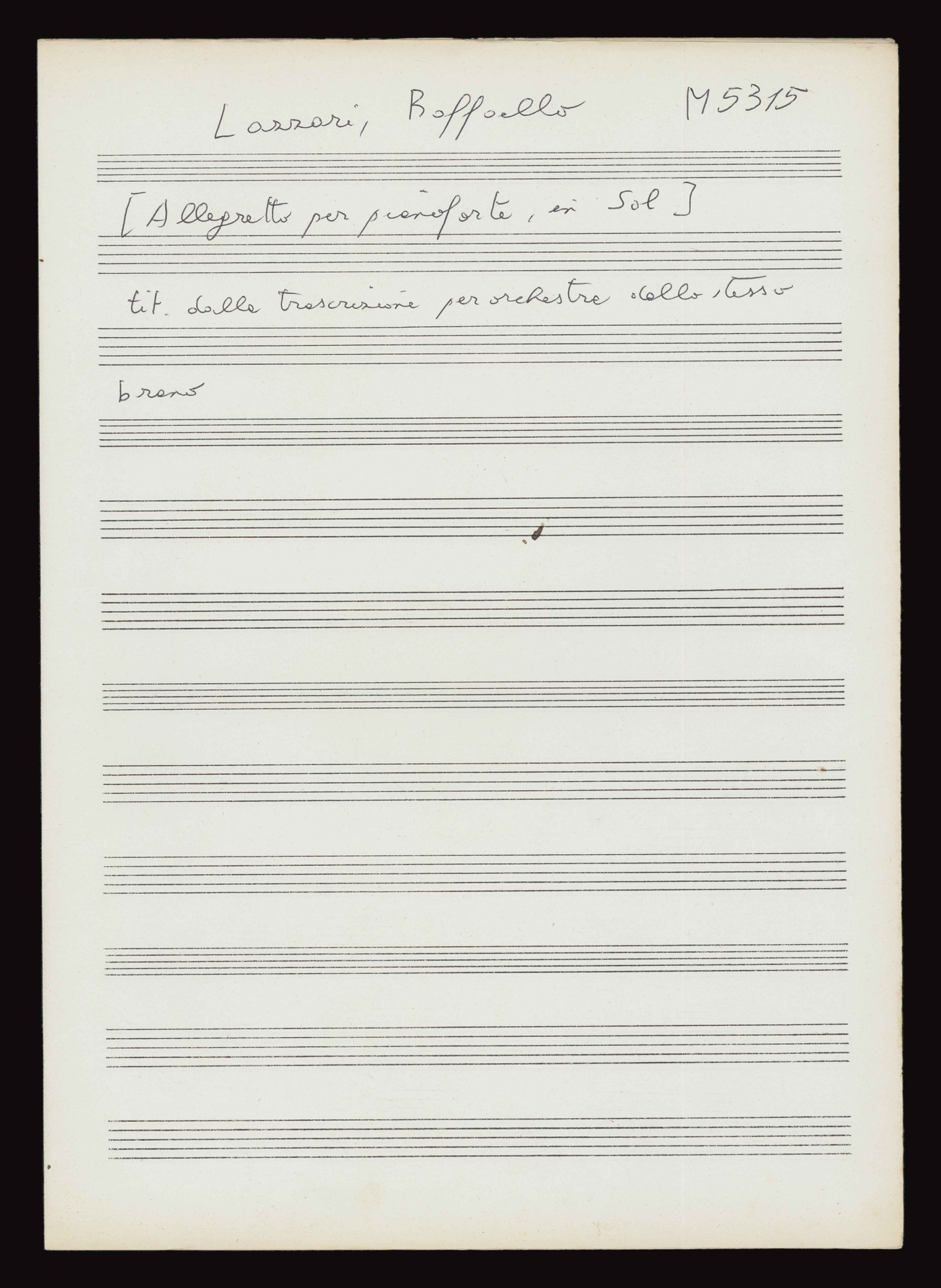 [4] c. ; 34 cm. Ricevuto in dono da Aldo Alberti Poja nel 1940. Manoscritto autografo. Incompiuto. Tit. dalla trascrizione per orchestra dello stesso brano