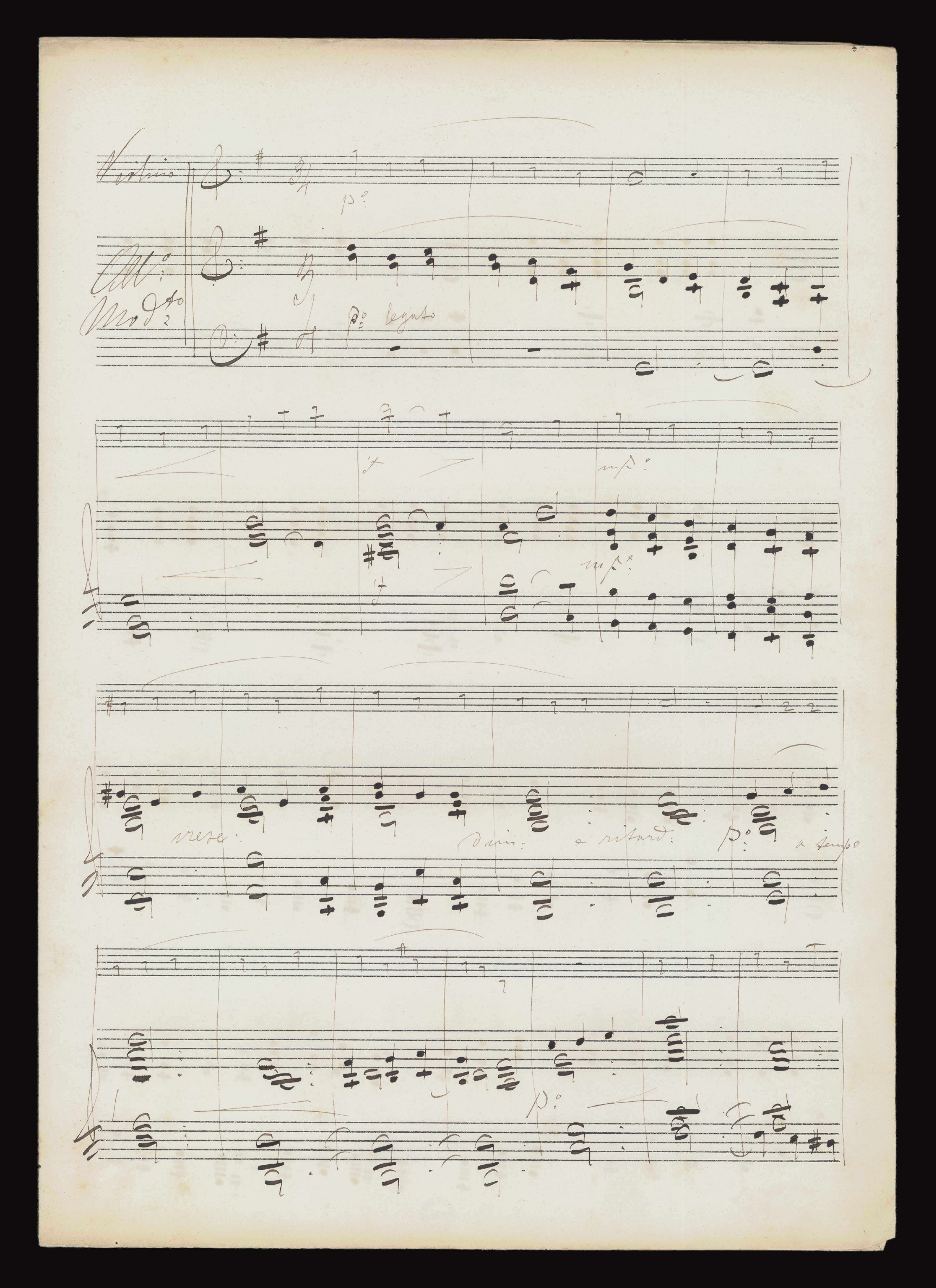 1 partitura ([4] c.) ; 33 cm + 1 parte ([2] c.). Ricevuto in dono da Aldo Alberti Poja nel 1940. Manoscritto autografo