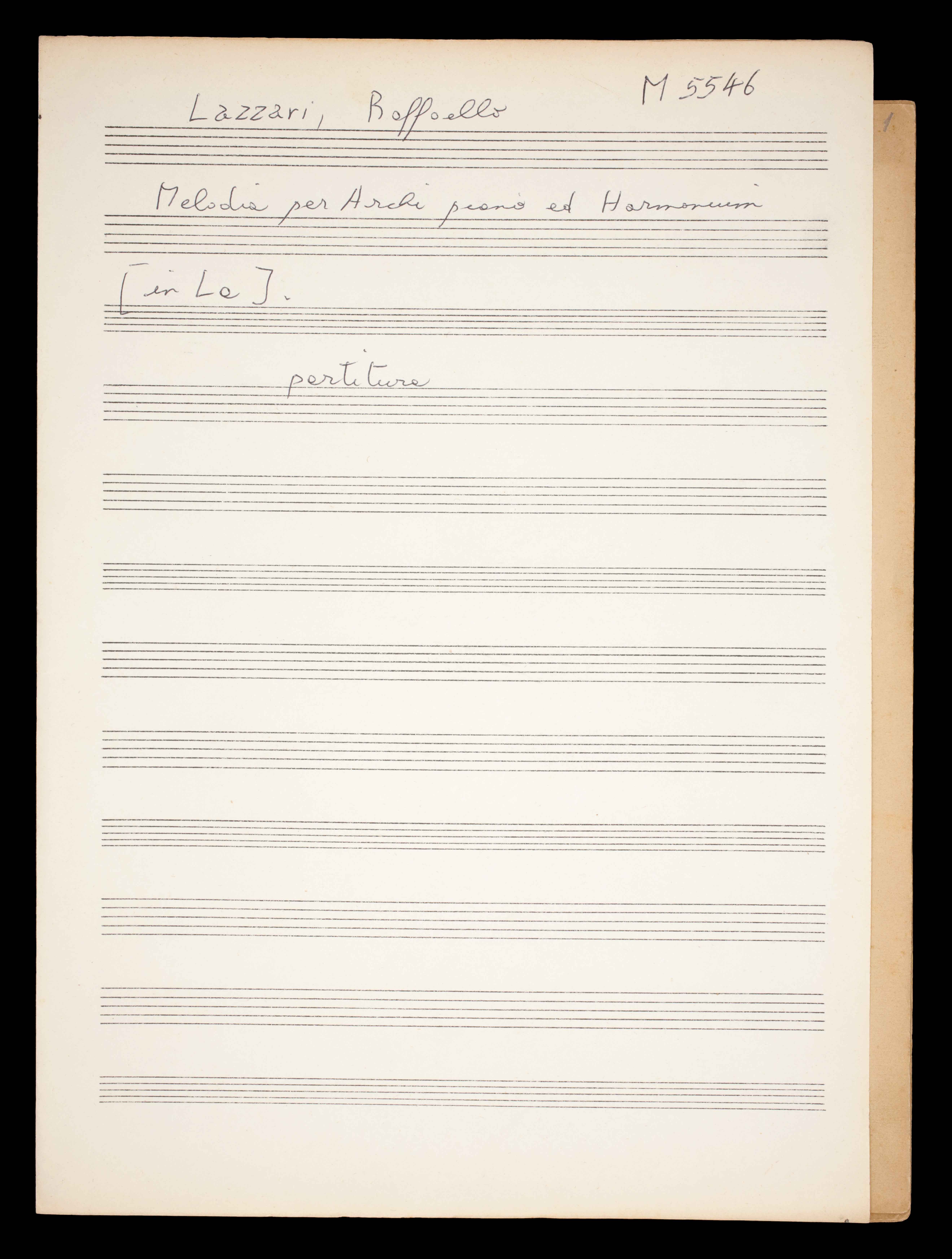 1 partitura ([3] c.) ; 34 cm + 1 parte ([2] c.). Ricevuto in dono da Aldo Alberti Poja nel 1940. Manoscritto autografo