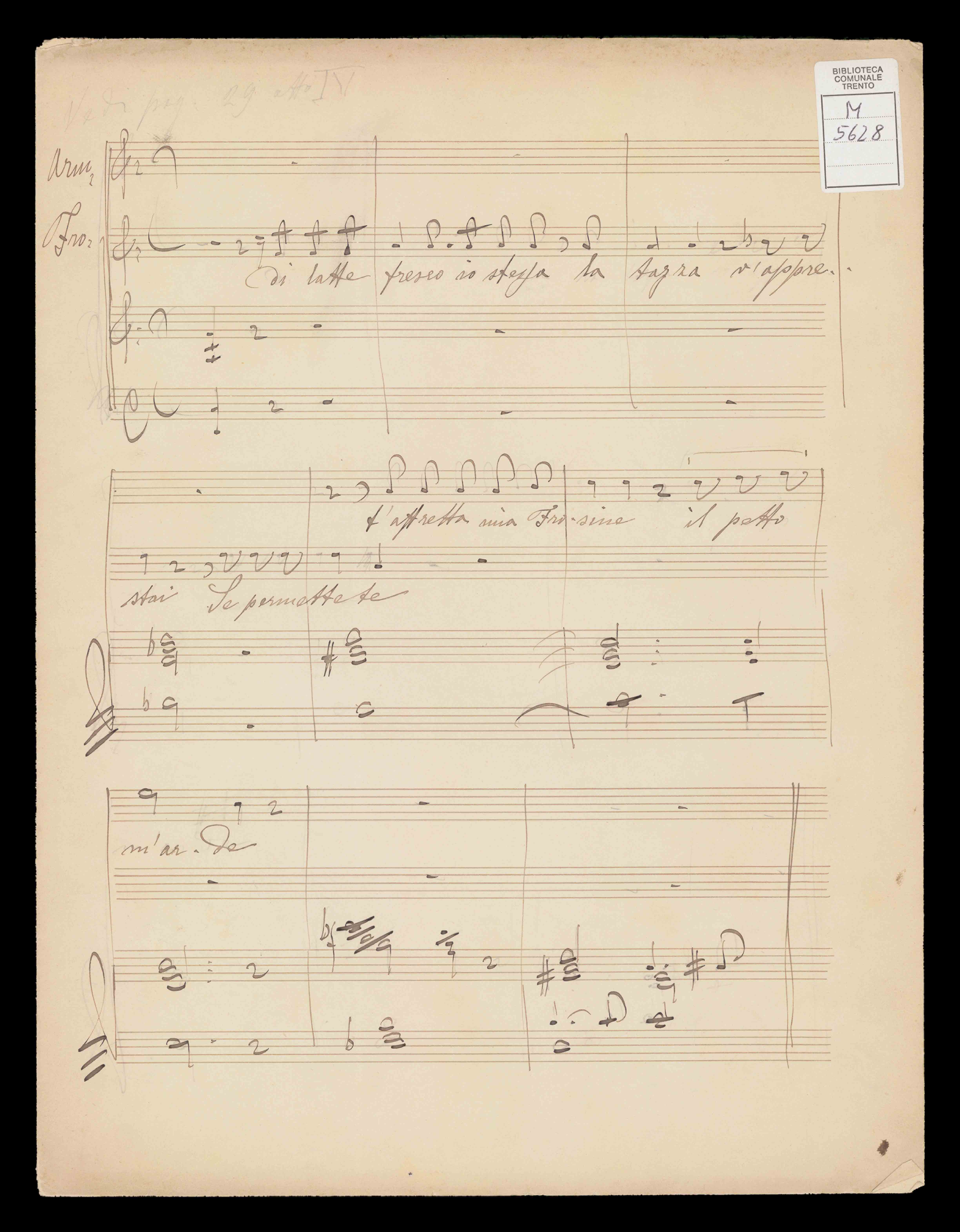 1 spartito ([126] c.) ; 34 cm. Ricevuto in dono da Aldo Alberti Poja nel 1940. Manoscritto autografo. Titolo dal libretto