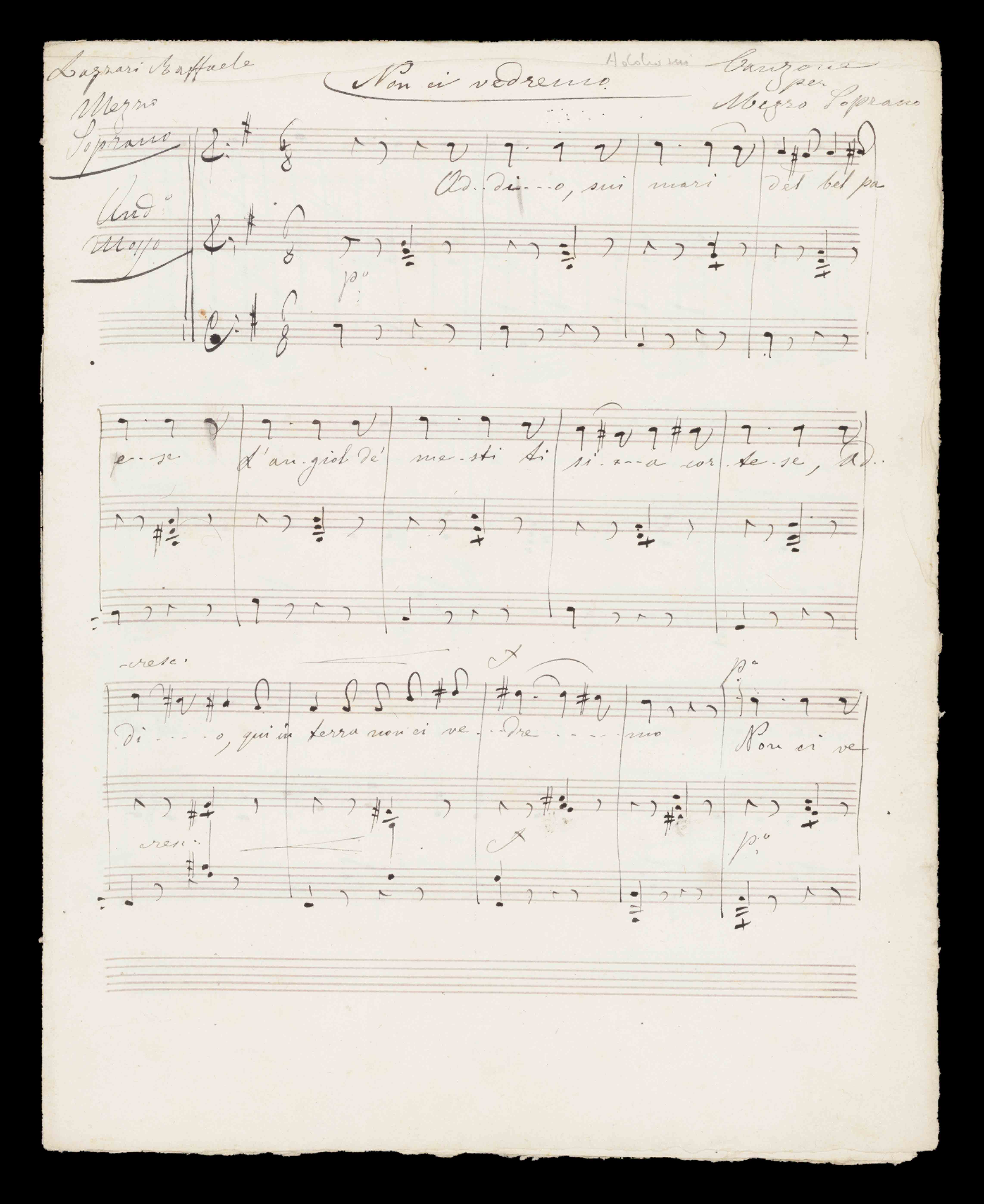 | Non ci vedremo. Canzone. Mzs, pf |