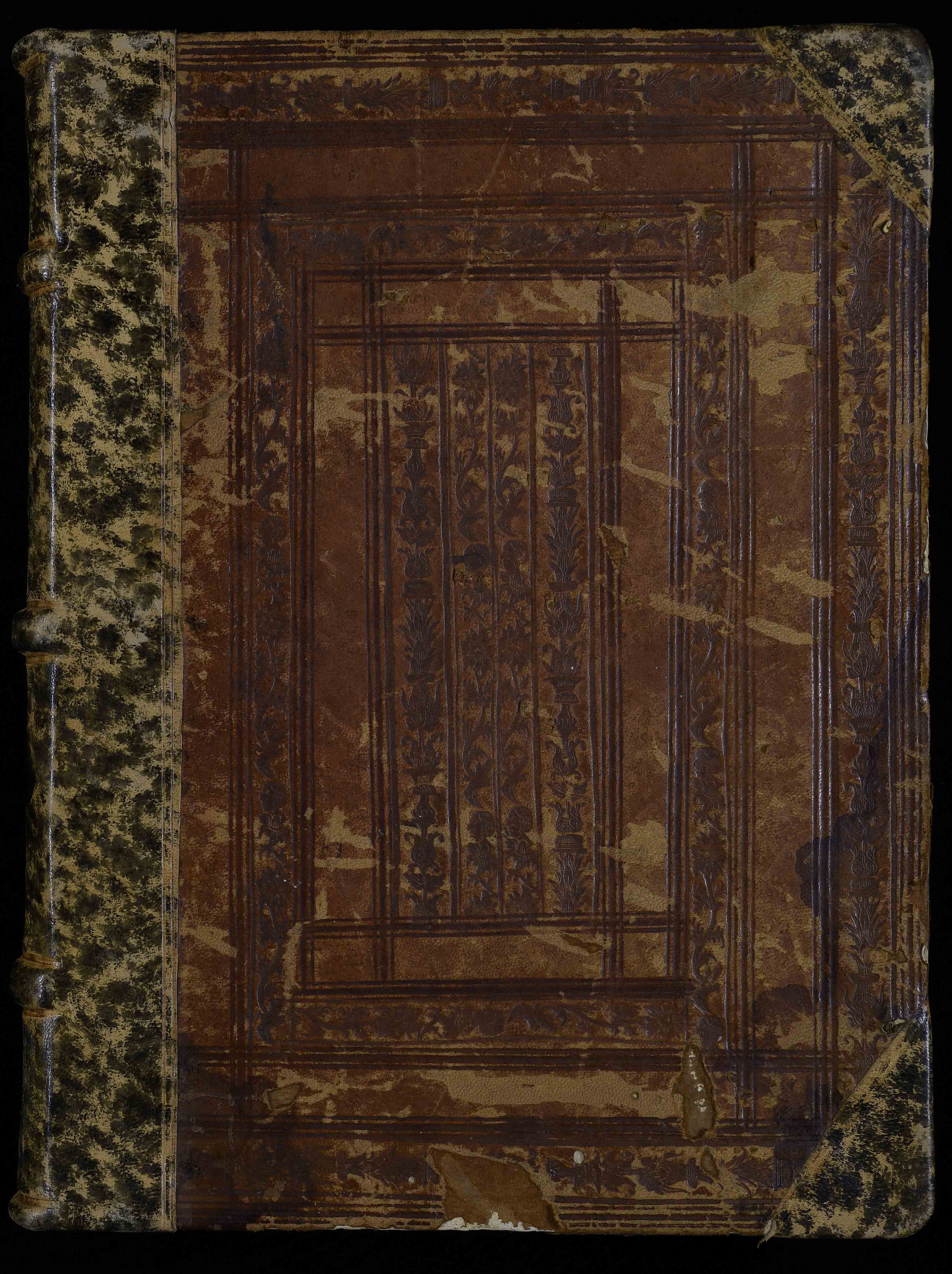 Cart.; ff. II, 175 (pp. 352, paginati i ff. I-II); 1-1310, 148, 15-1710, 187; richiami; tracce di numerazione dei fascicoli in numeri romani; in-folio; 324 x 238 = 28 [242] 54 x 32 [164] 42; rr. 2 / II. 44 variabili; rigatura a colore. Maniculae. Iniziali semplici, scritture distintive in inchiostro; sottolineature e ritocchi in rosso delle maiuscole solo alle pp. 120-121. Bianche le pp. 271-278, 346-352. Slegate le pp. 286, 292. Strappata la p. 342. Legatura antica in cuoio impresso a secco su piatti; rinforzo del dorso di epoca moderna; titolo sul taglio di testa.