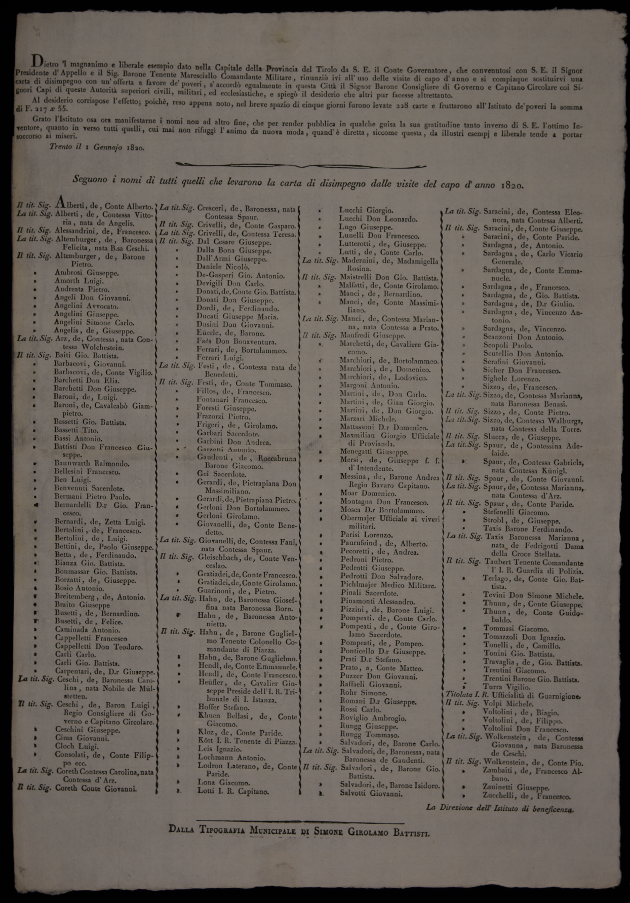 | Dietro 'l magnanimo e liberale esempio dato nella capitale della provincia del Tirolo da S. E. il Conte Governatore … |